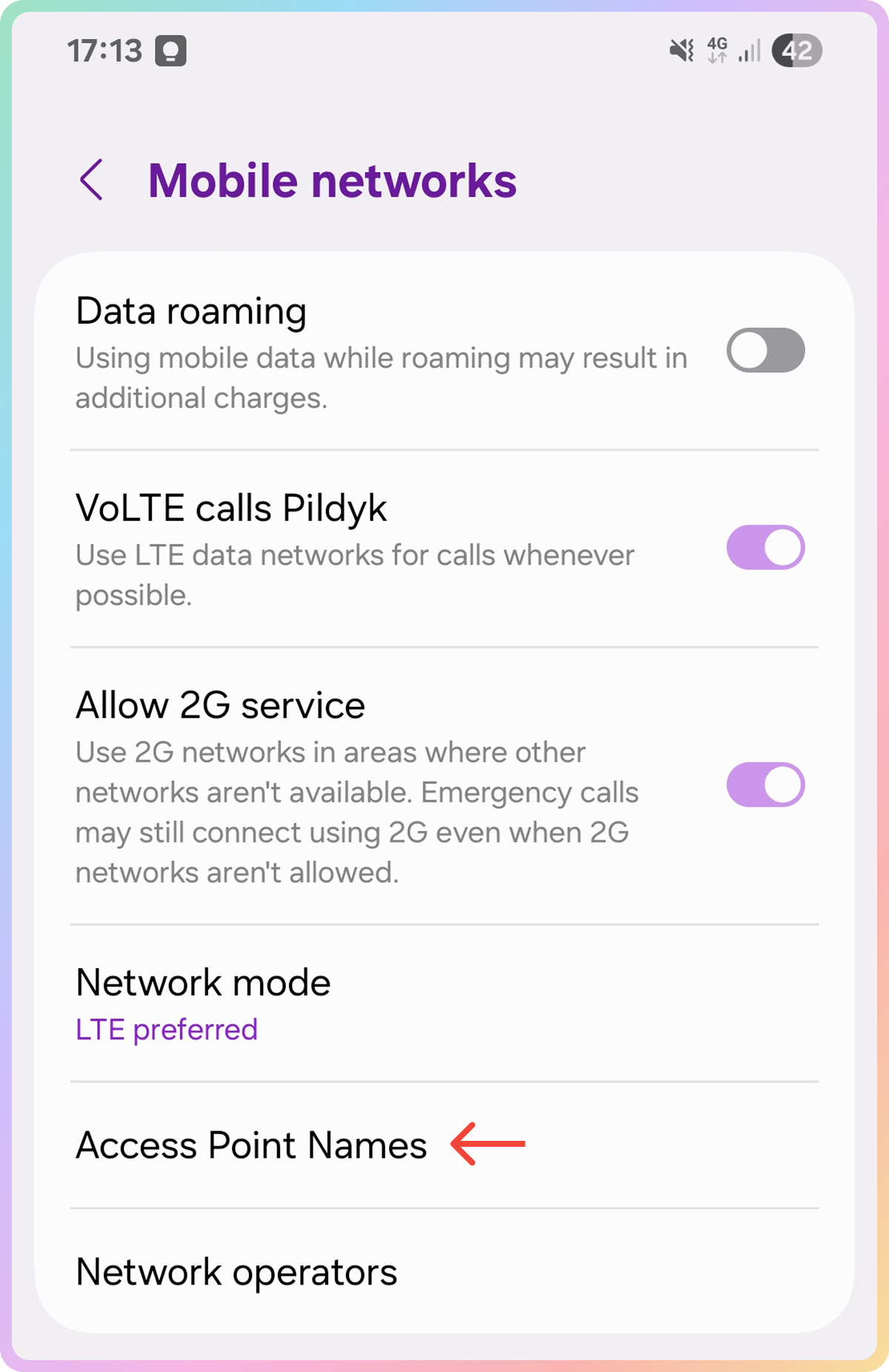 Step 2. Select Access Point Names (APN) and tap on your active APN.
