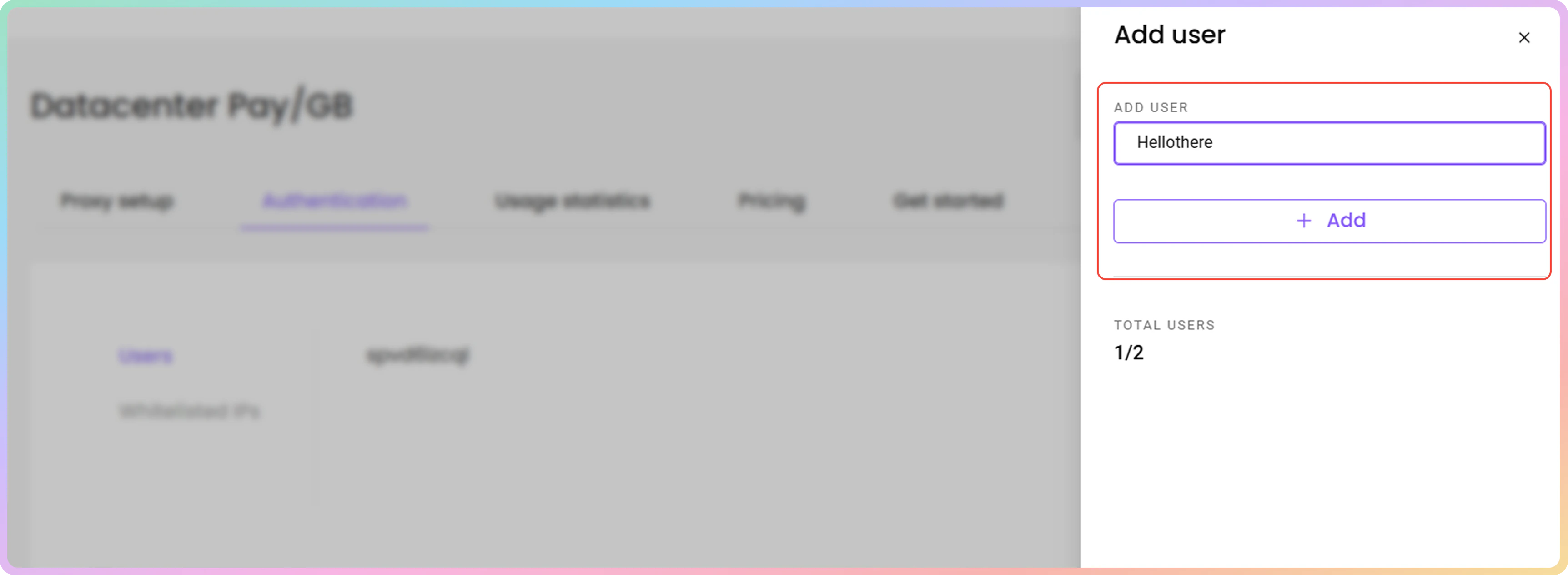 - 要创建新的代理用户,请点击**+ 添加用户**。右侧将打开一个菜单。