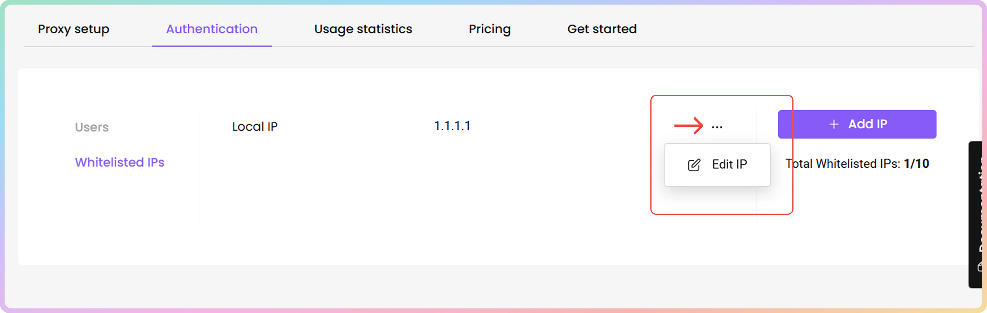 - 或者,您可以直接在代理设置部分添加或编辑白名单IP。