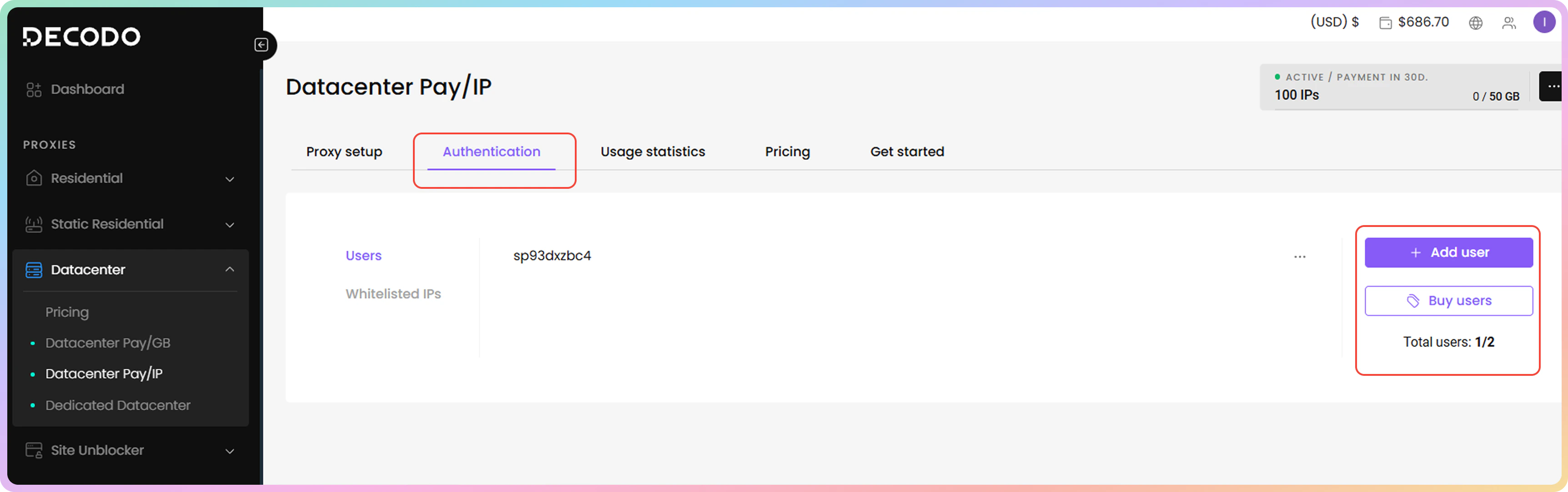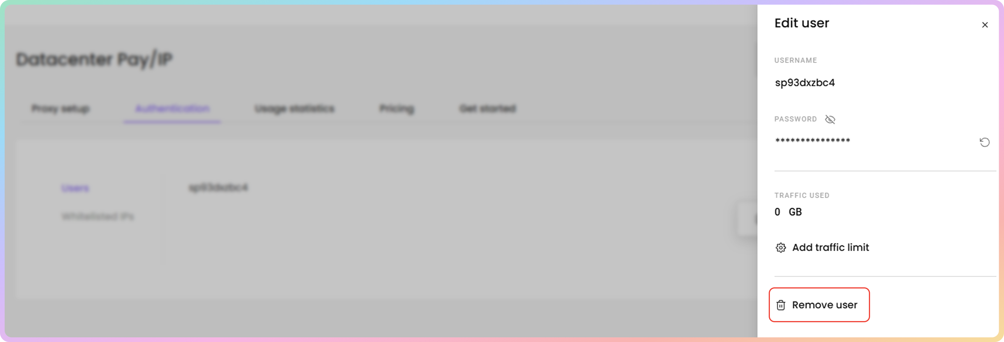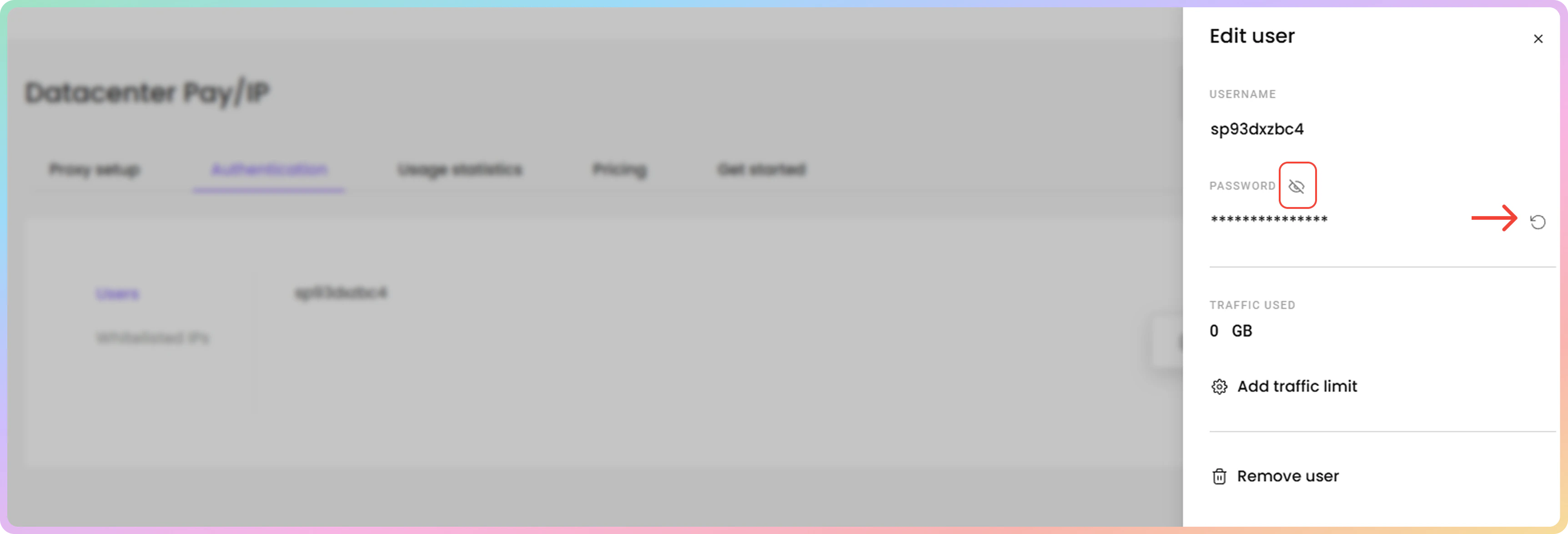 - 购买订阅后,系统将在身份验证部分自动生成代理用户名和密码。