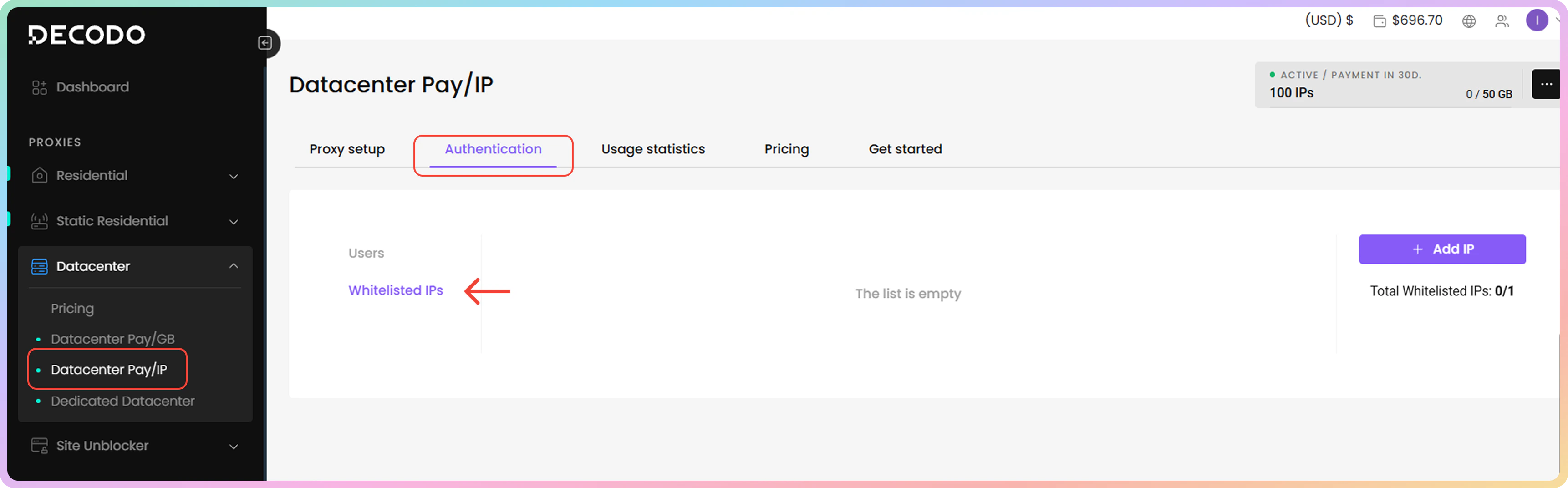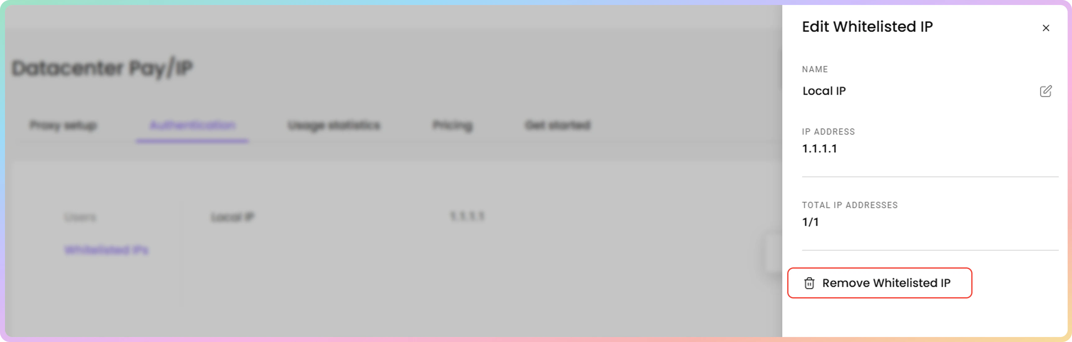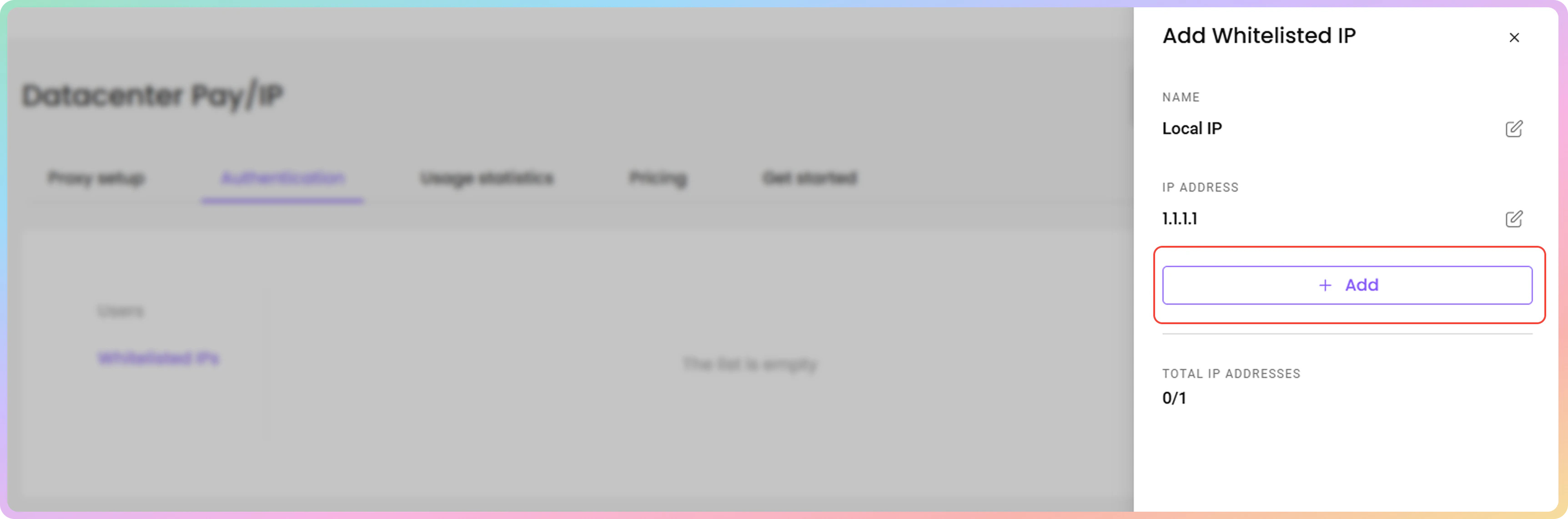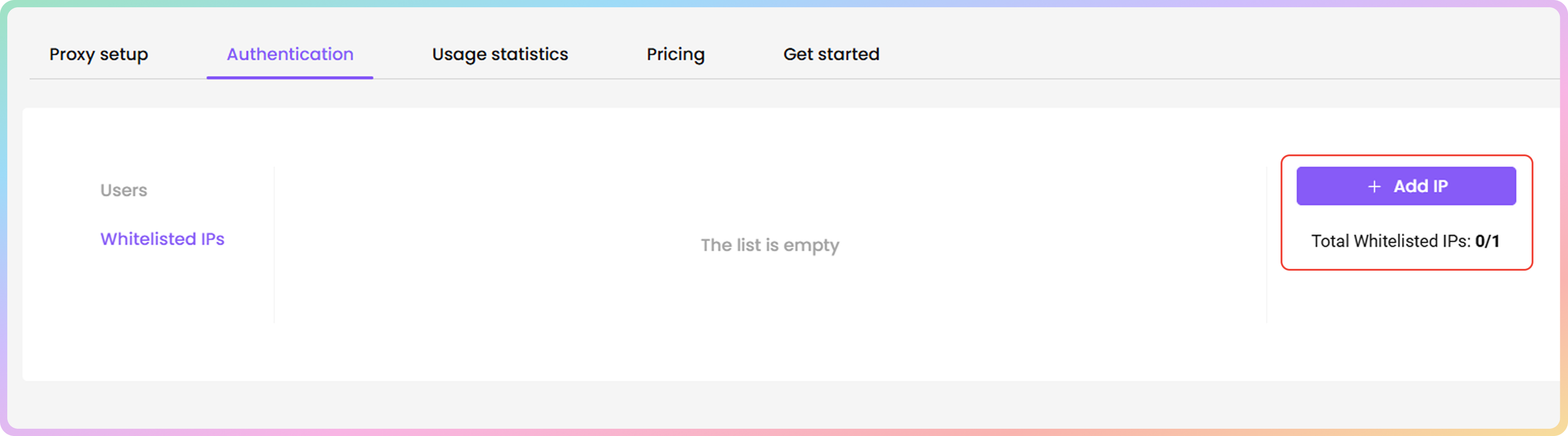- 您可以通过点击身份验证部分的白名单IP选项卡来管理您的白名单IP。