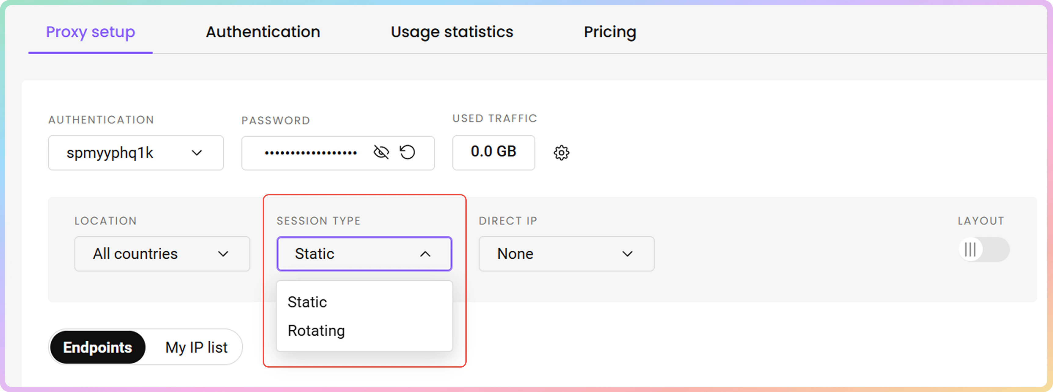 端口**10000**会在您发出的每个请求中轮换IP,并将从您购买的IP列表中选择IP。