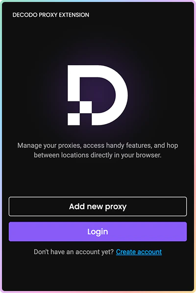 添加扩展后,按照以下简单步骤开始通过代理连接,无需通过 Decodo 仪表板登录:设置