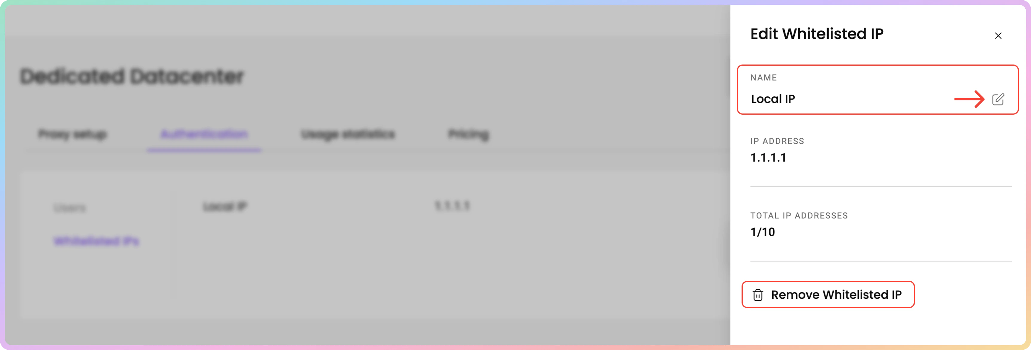 - 要命名您的白名单IP,请点击编辑并输入您想要的名称。点击保存以完成。