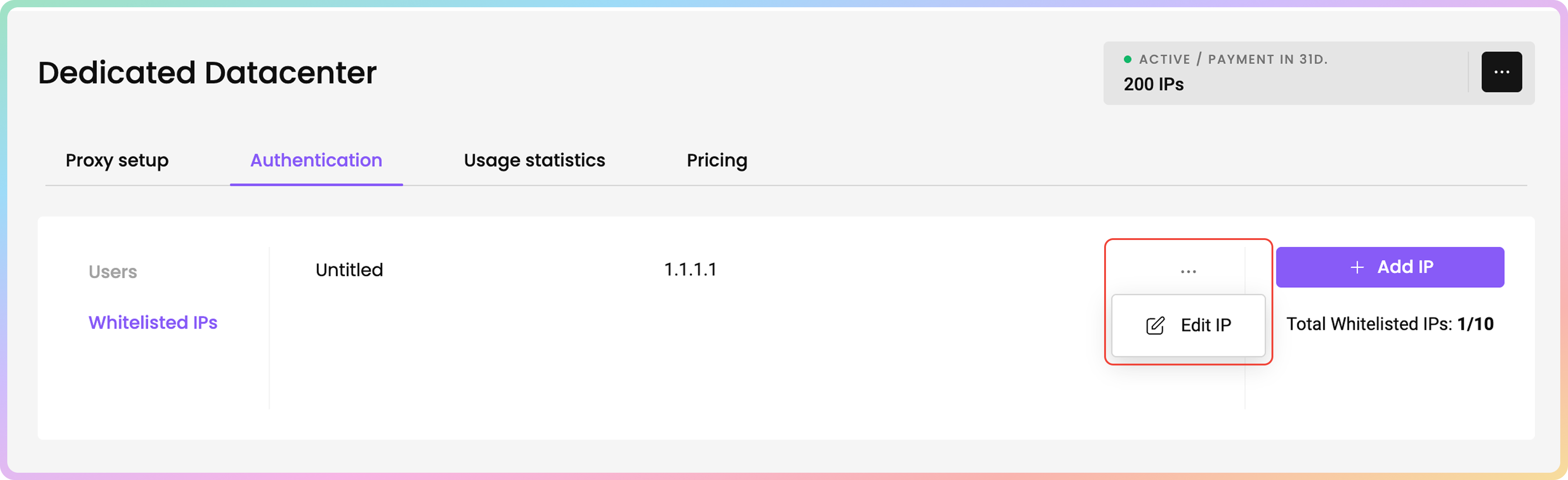 - 或者,您可以直接在代理设置部分添加或编辑白名单IP。