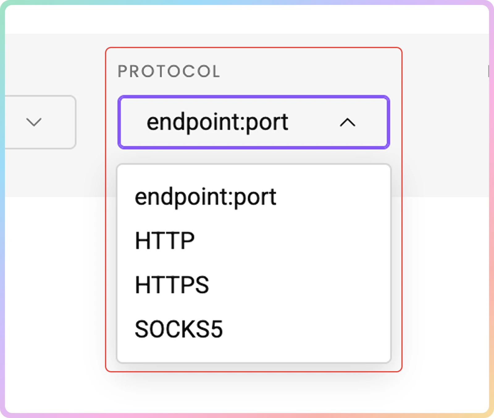 Endpoint:port、HTTP、HTTPS和SOCKS5。