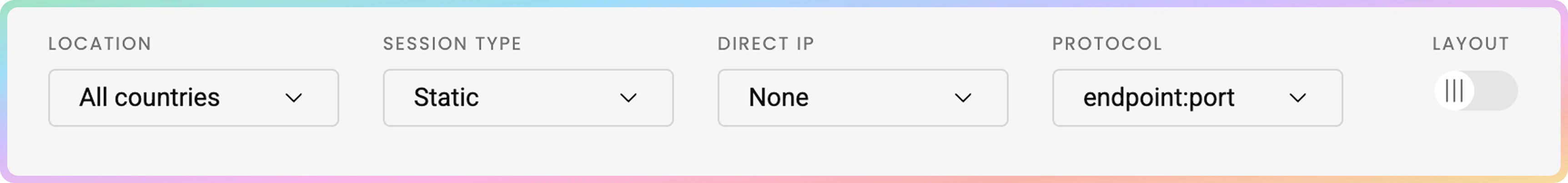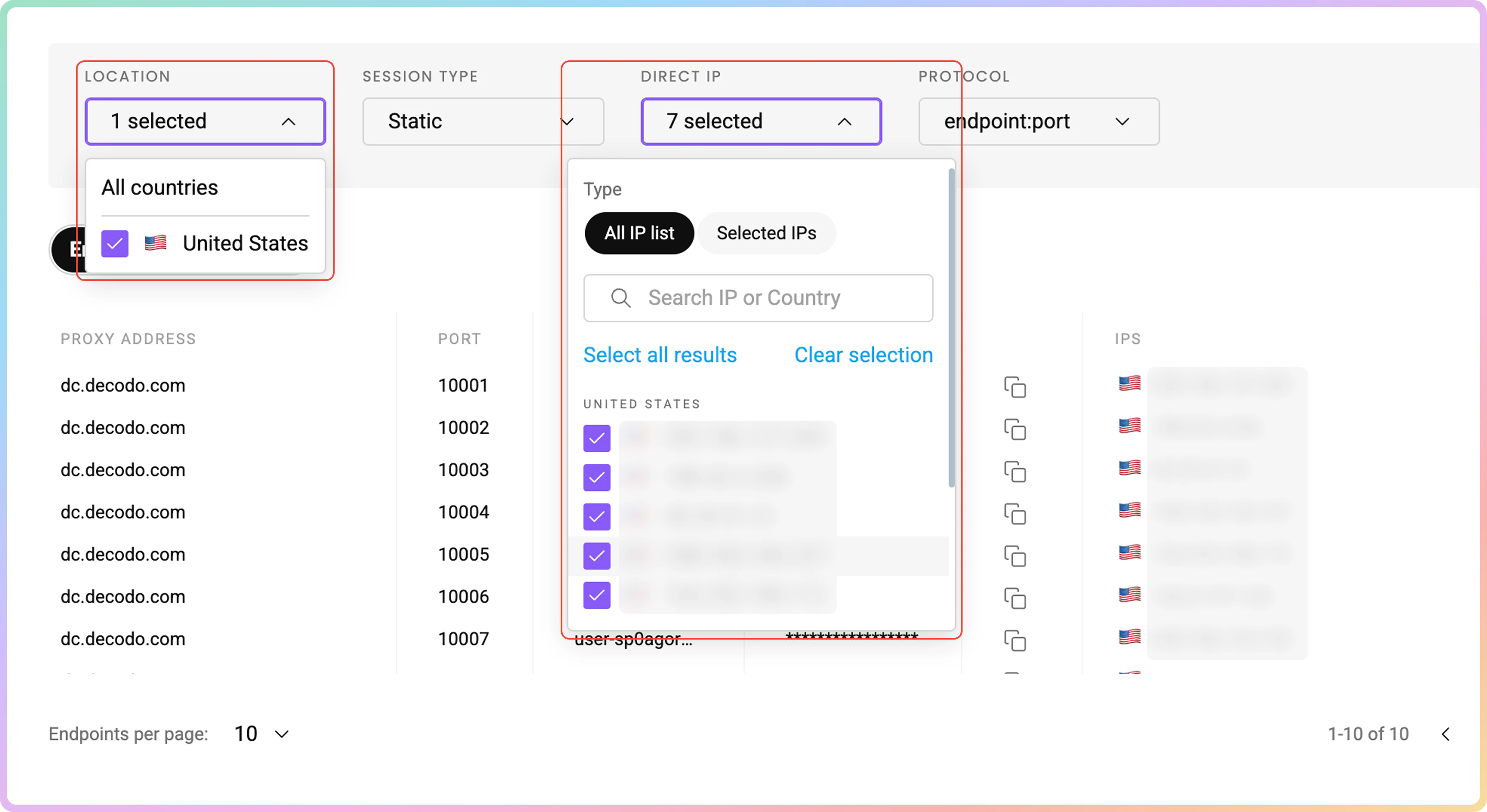 - IP 选择将限于位置下选择的国家(所有国家将提供完整列表)。