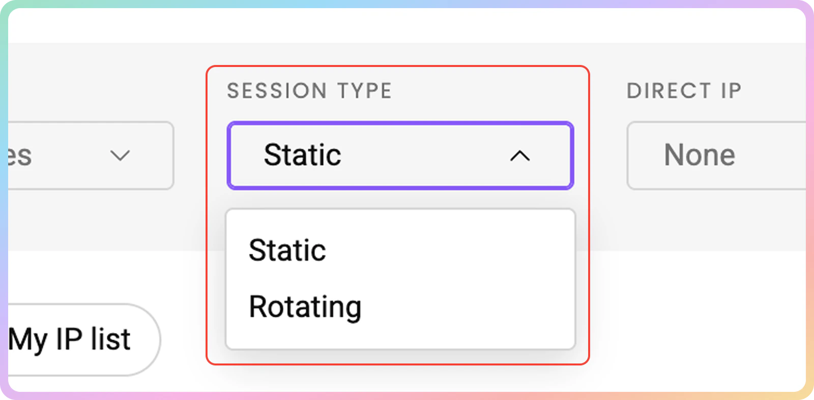 - IP选择将限于位置下选择的国家(所有国家将提供完整列表)。