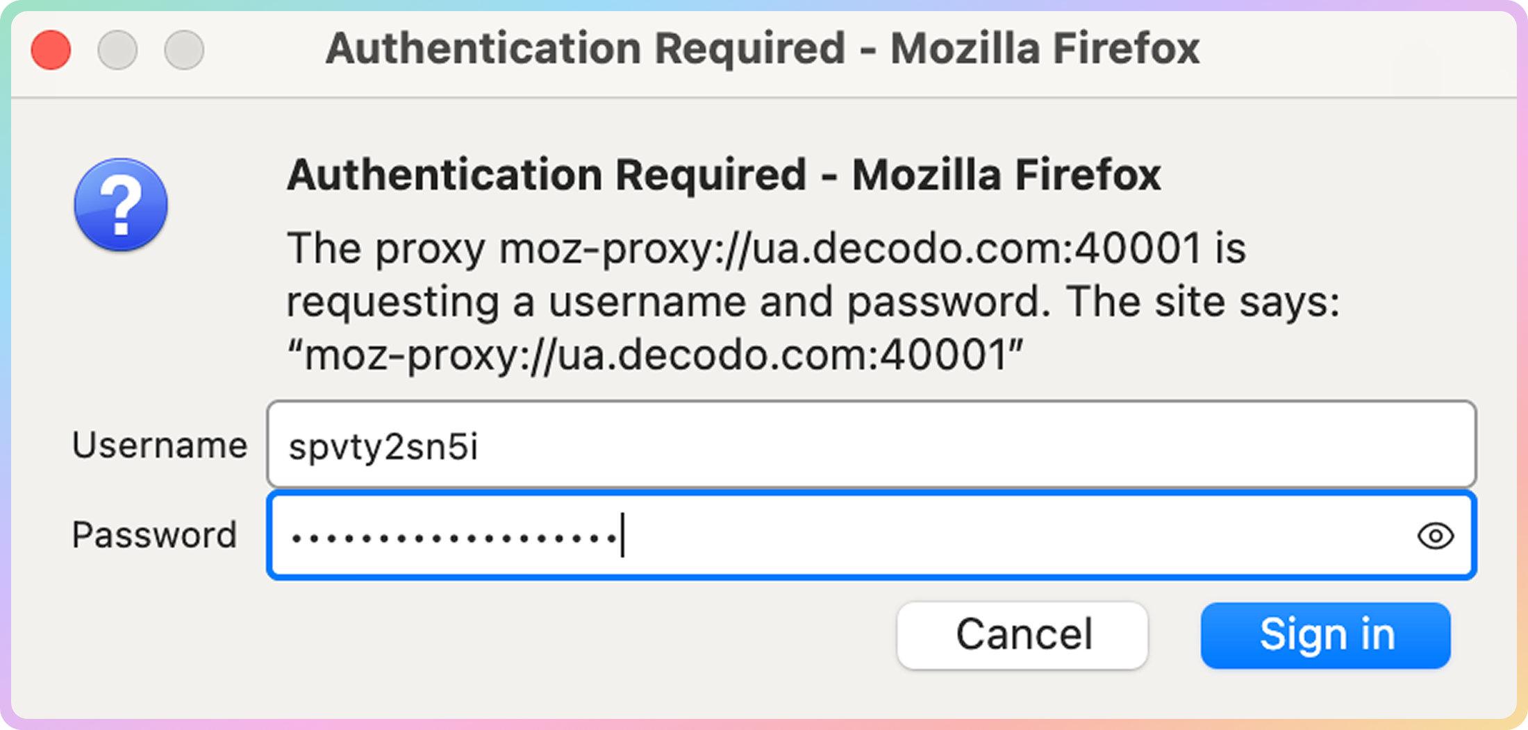 us.decodo.com:10101)。 - 如有必要,请尝试此处的解决方法,但它只能暂时工作,之后需要再次更新设置。