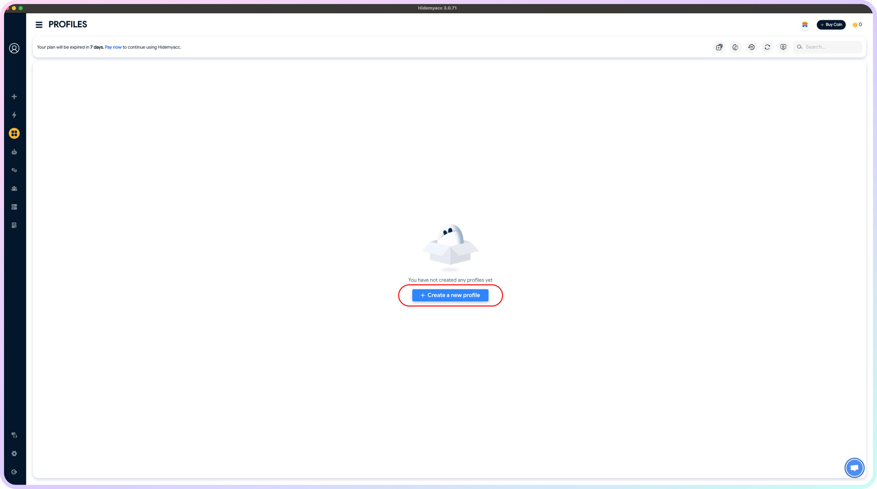首先,下载 应用程序并创建 Hidemyacc 账户。您必须直接在应用程序上注册账户;通过其他浏览器注册将无法使用。