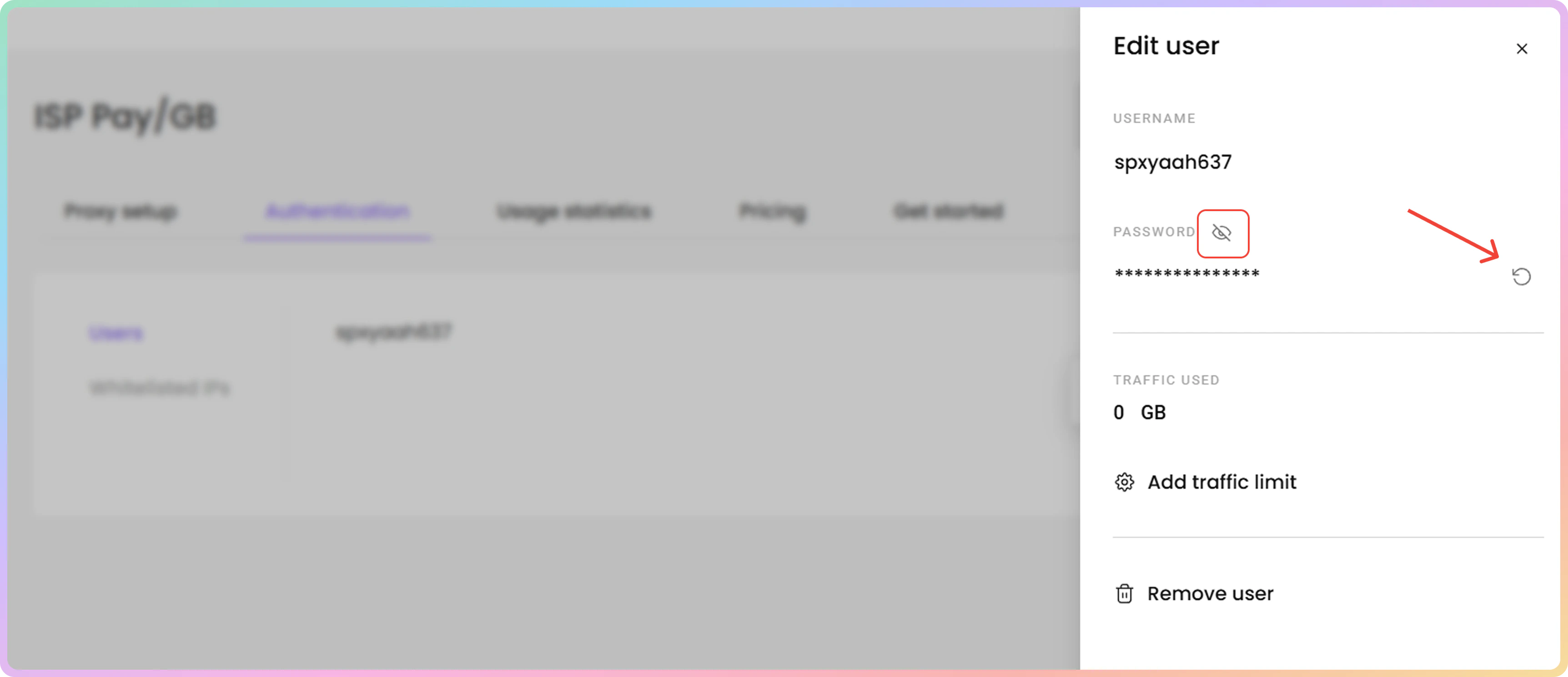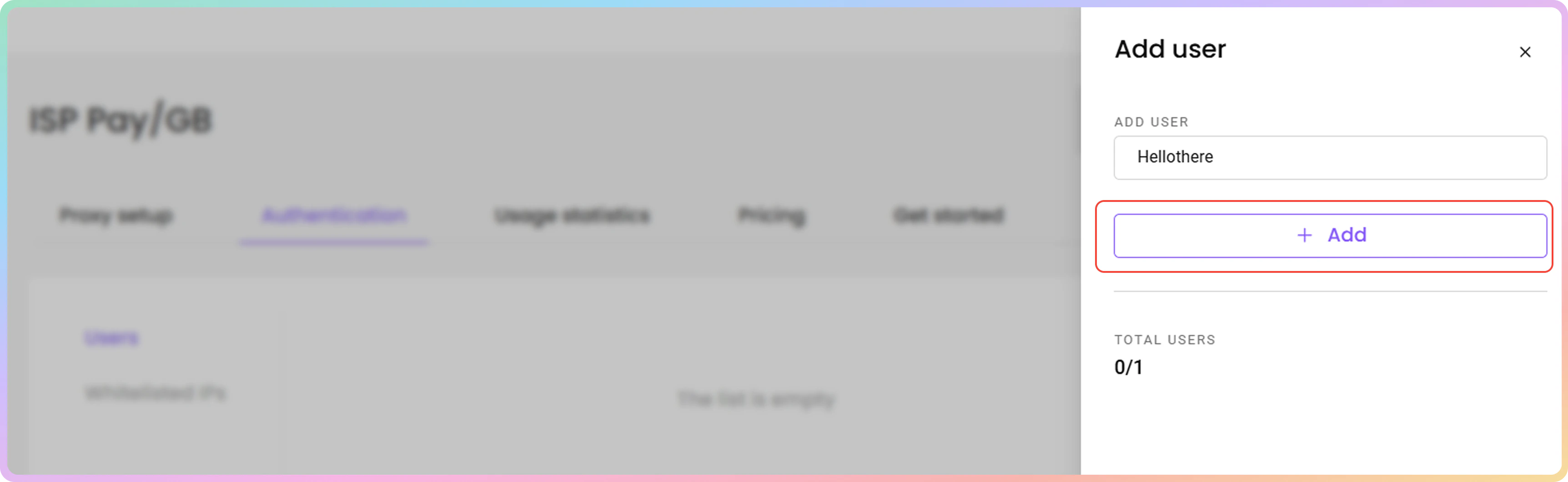 - 要创建新的代理用户名和密码,请点击 + 添加用户。右侧将打开一个菜单。