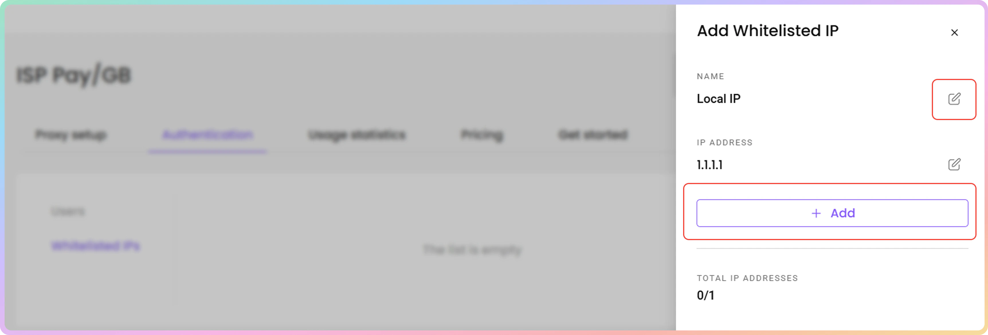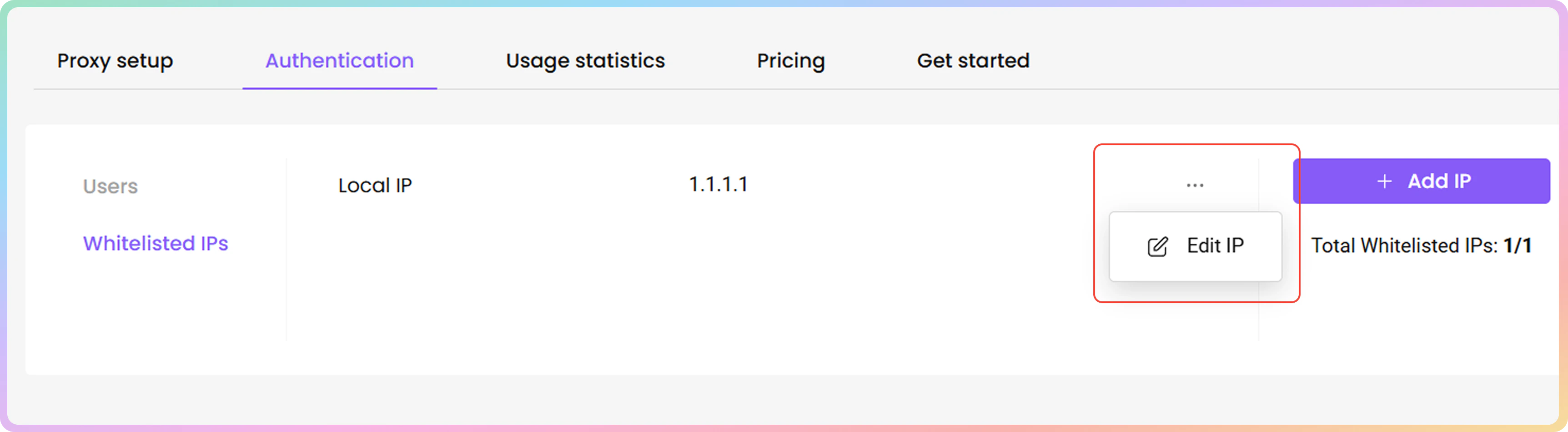- 或者,您也可以直接在代理设置部分添加或编辑白名单 IP。