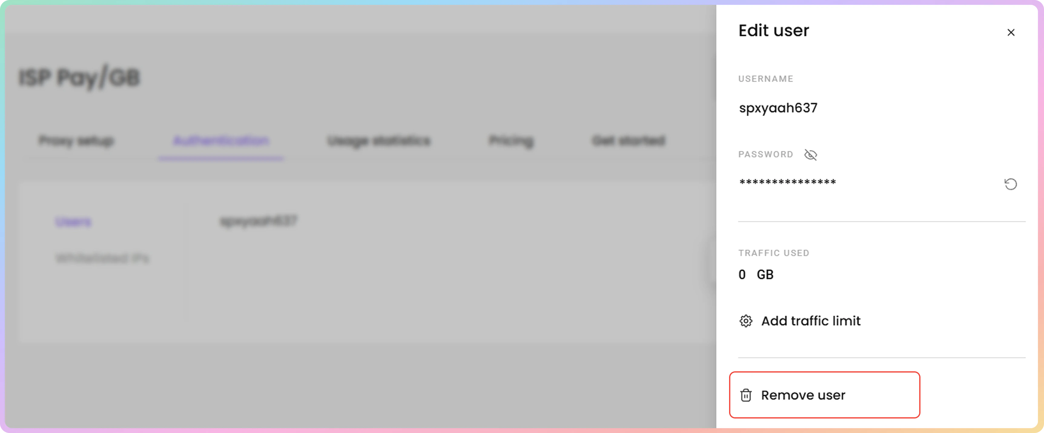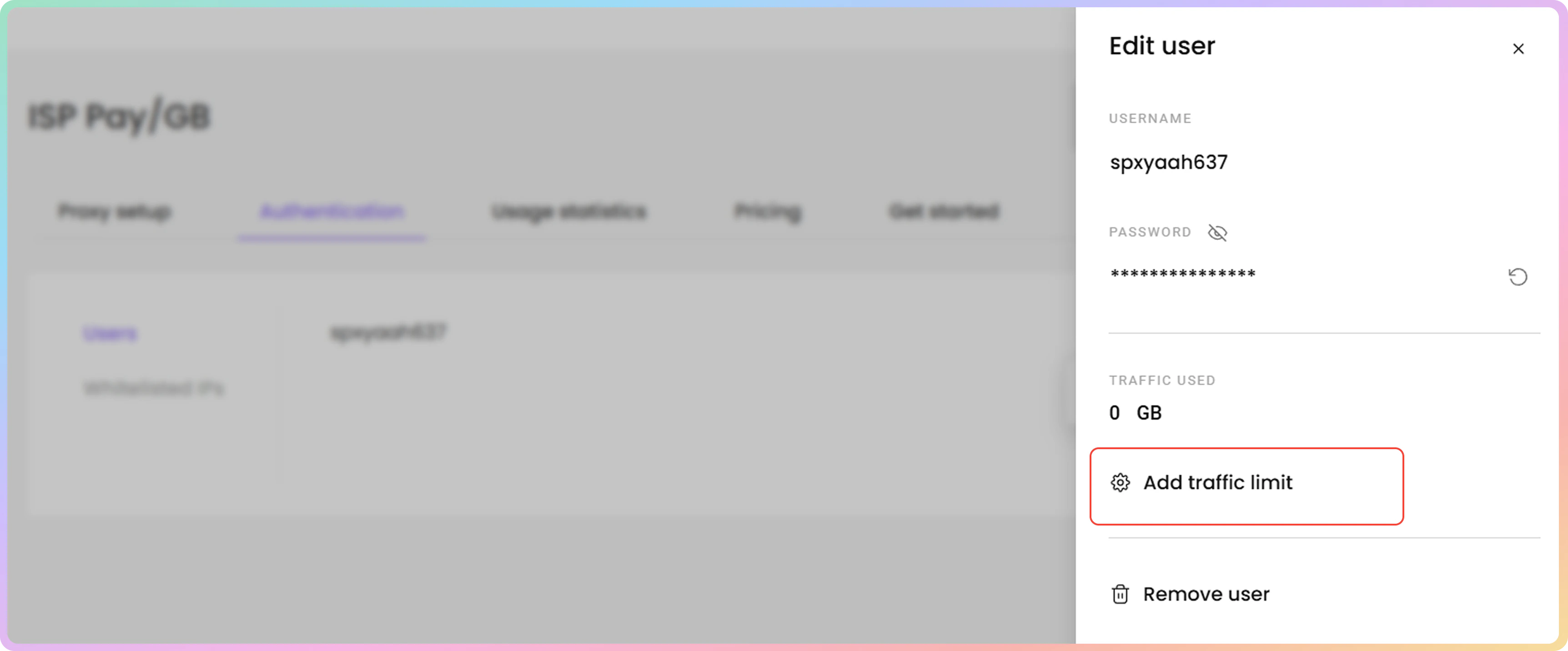 - 要为特定代理用户添加、编辑或删除流量限制,请点击添加流量限制。