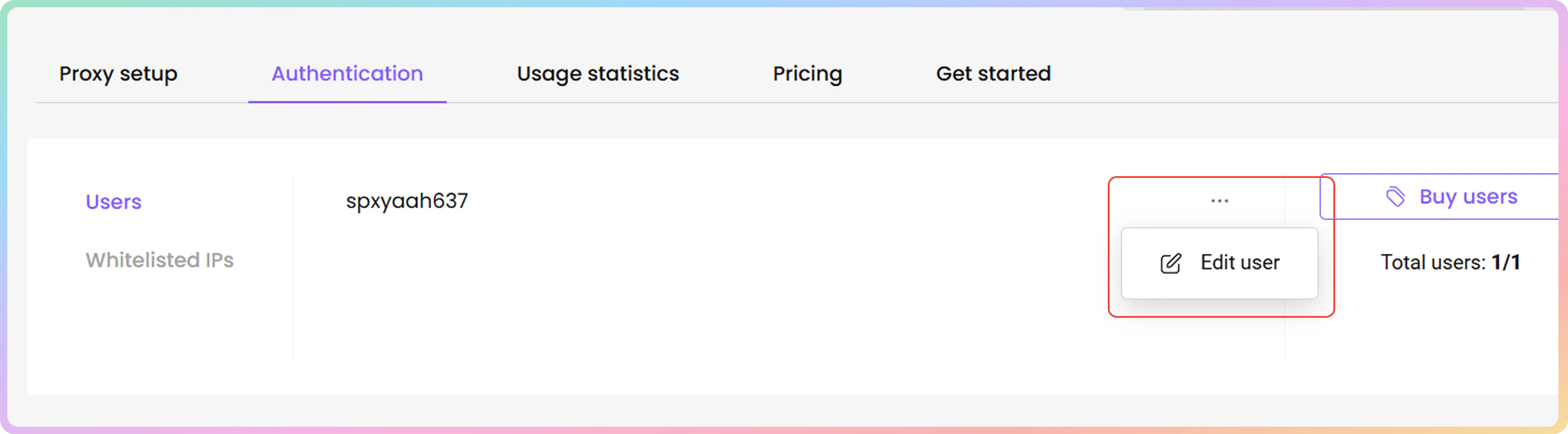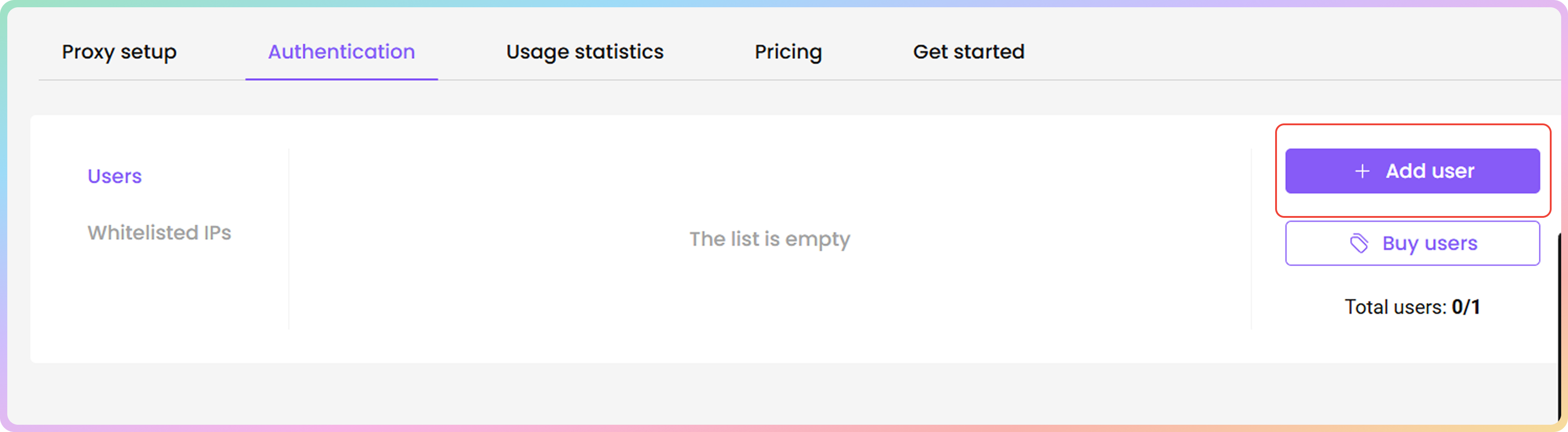 - 您可以通过点击身份验证部分的用户选项卡来管理您的代理用户。