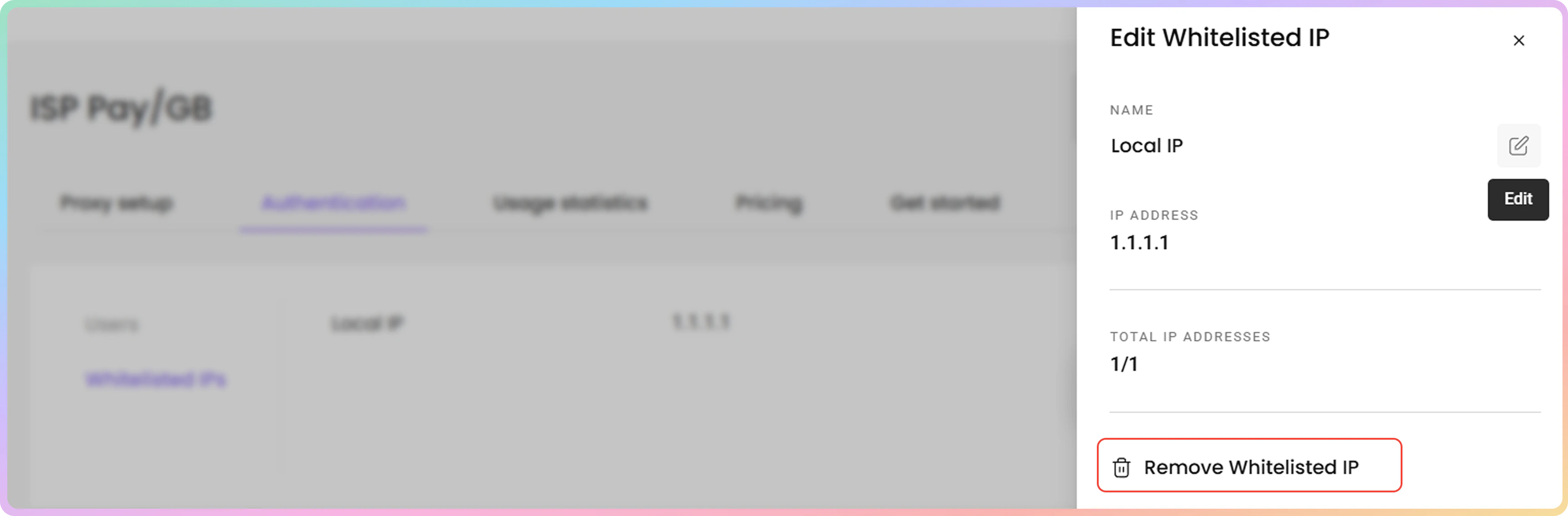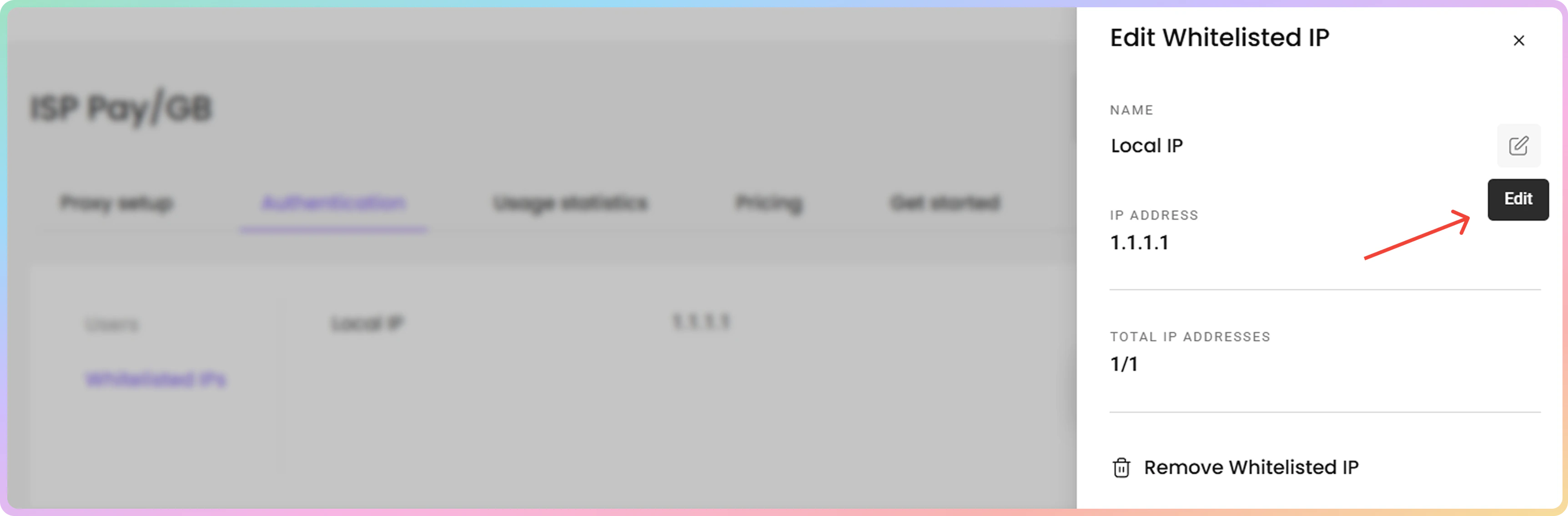 - 要编辑白名单 IP,请点击三个点,然后点击编辑 IP。右侧将打开一个菜单。