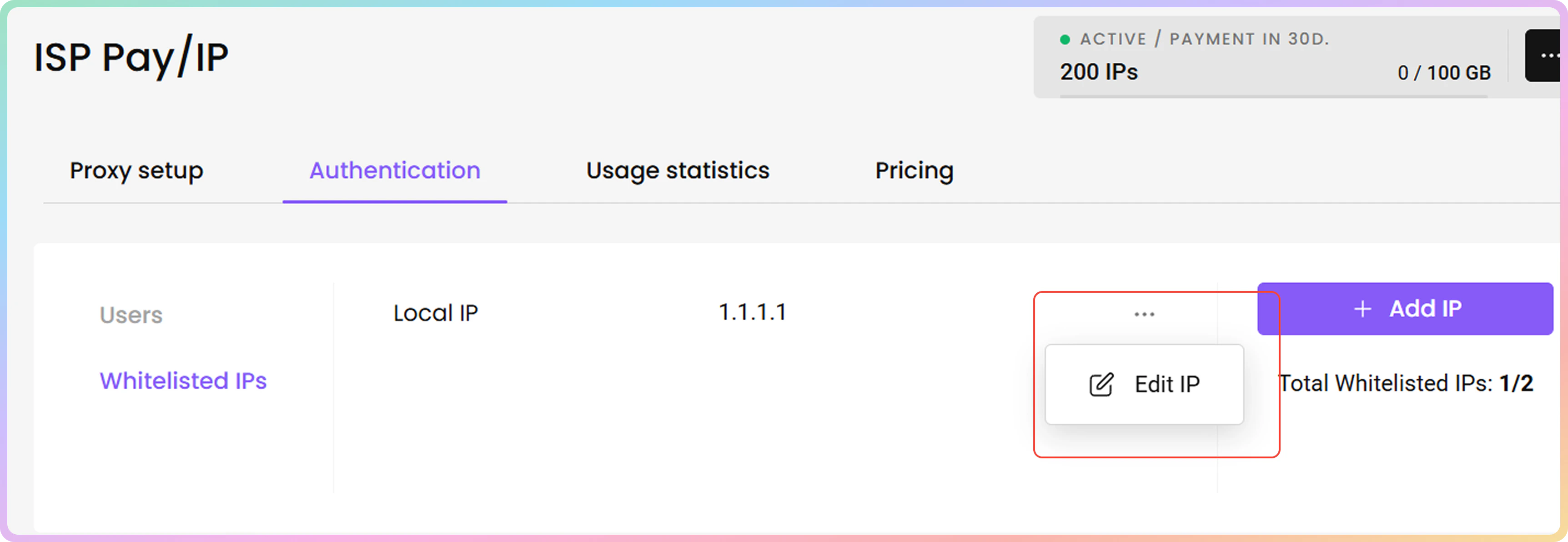 - 或者,您也可以直接在代理设置部分添加或编辑白名单IP。
