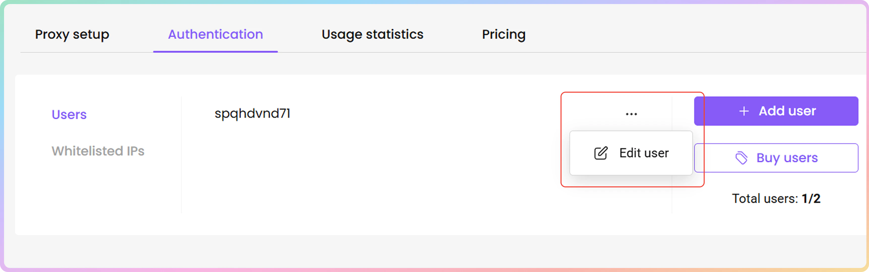 - 您可以通过点击身份验证部分的用户选项卡来管理您的代理用户。