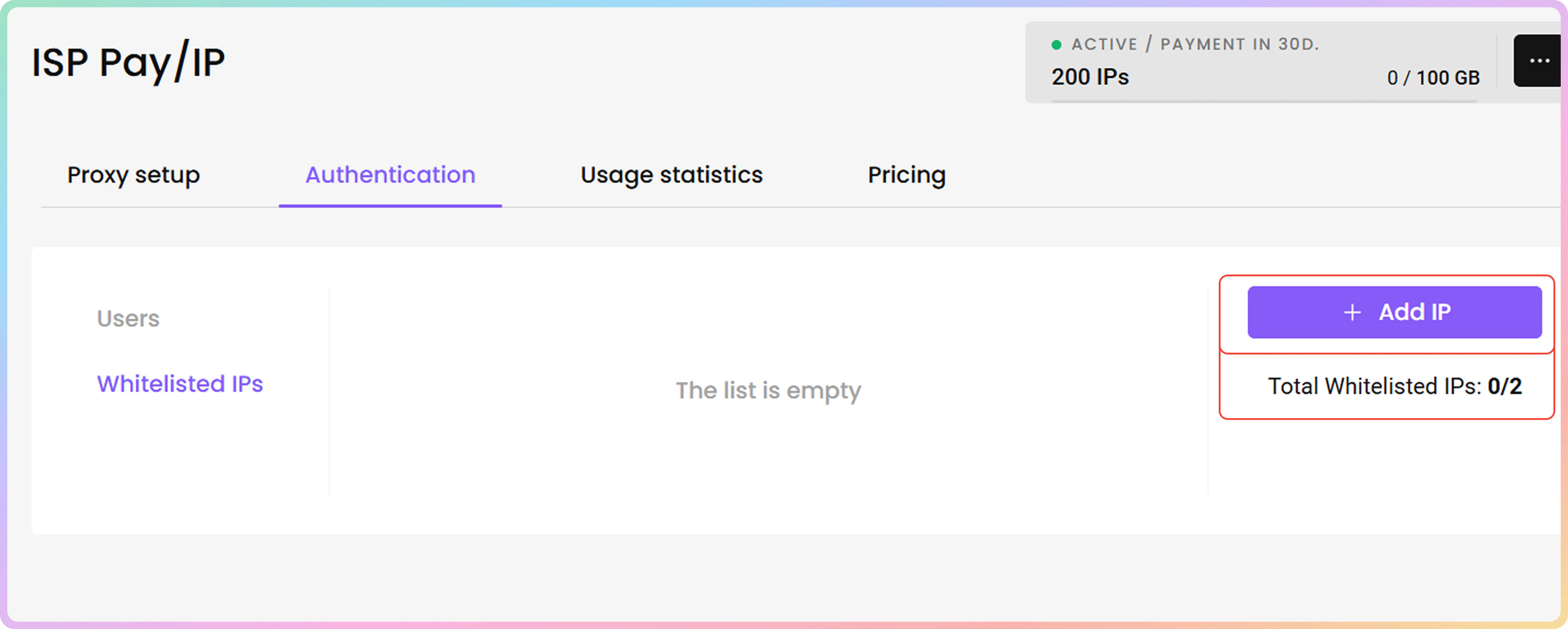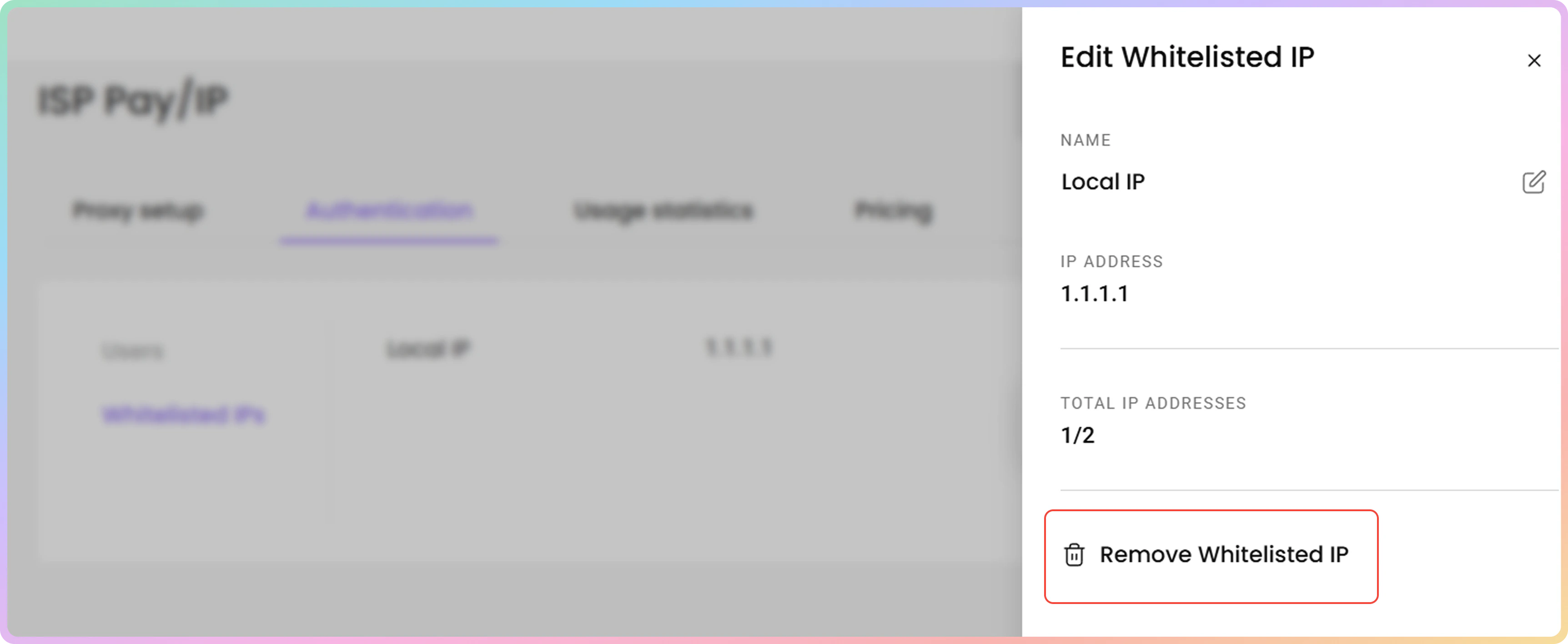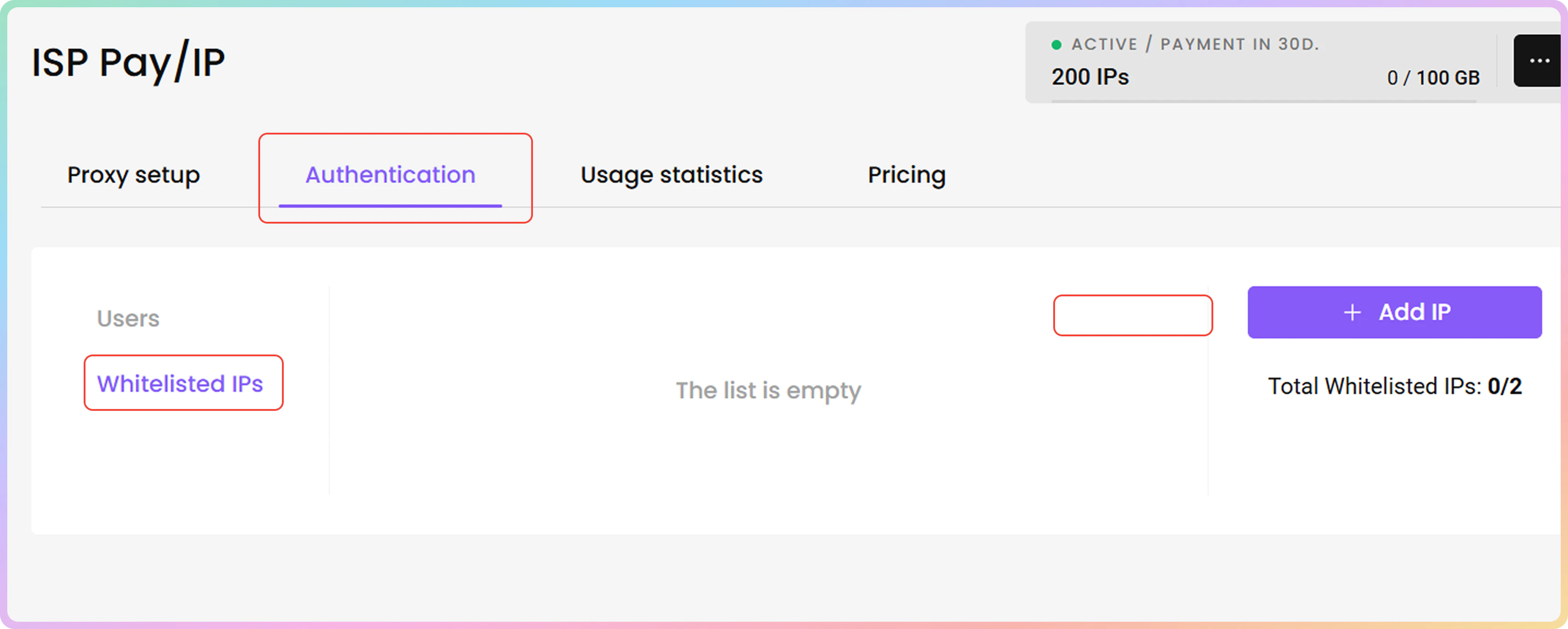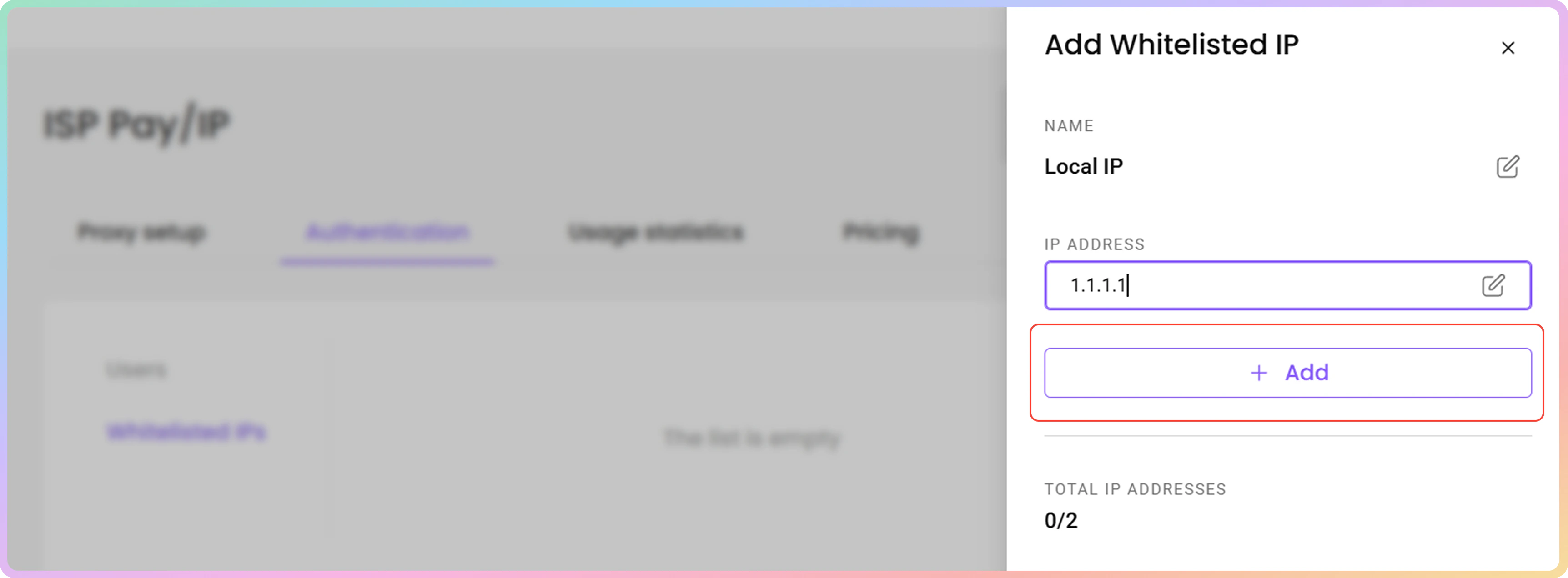 - 您可以通过点击身份验证部分的白名单IP选项卡来管理您的白名单IP。