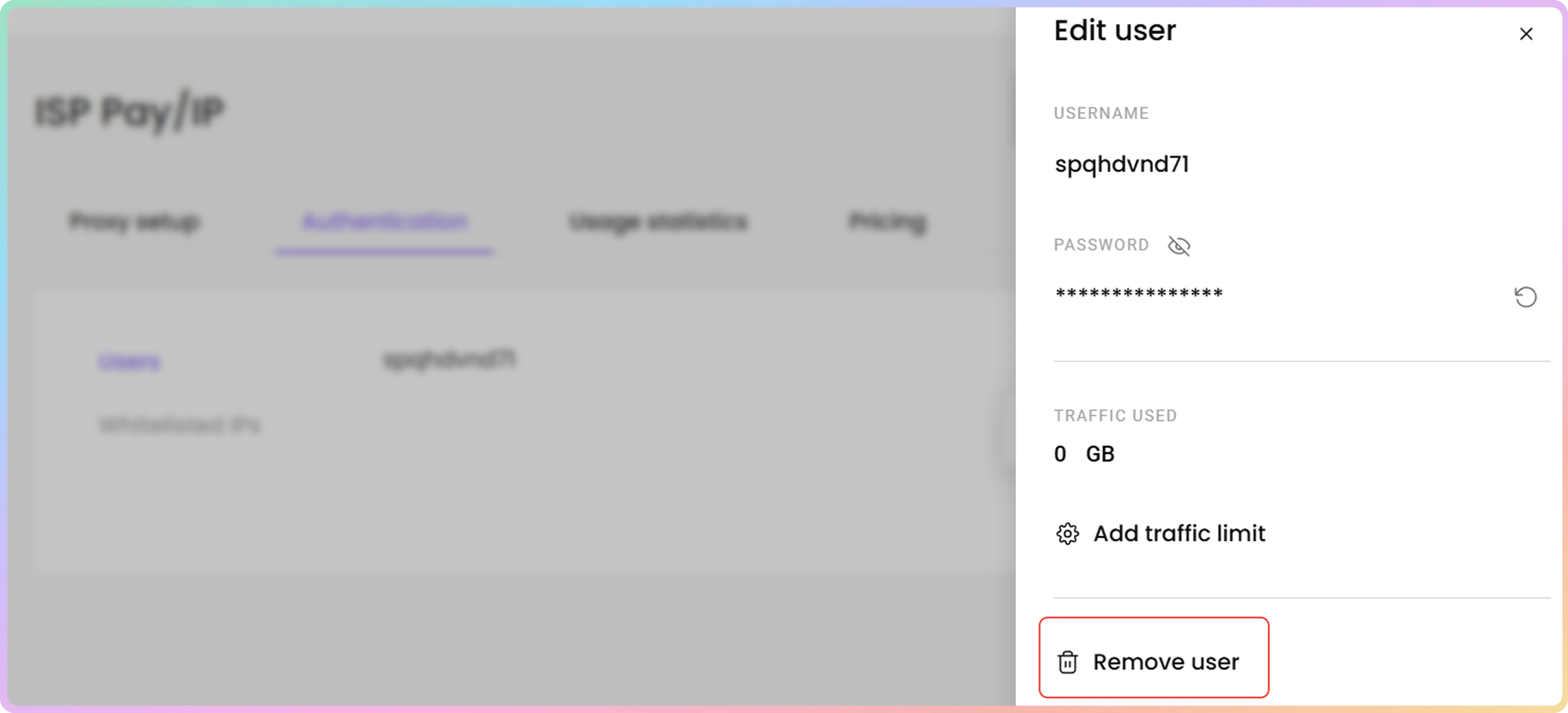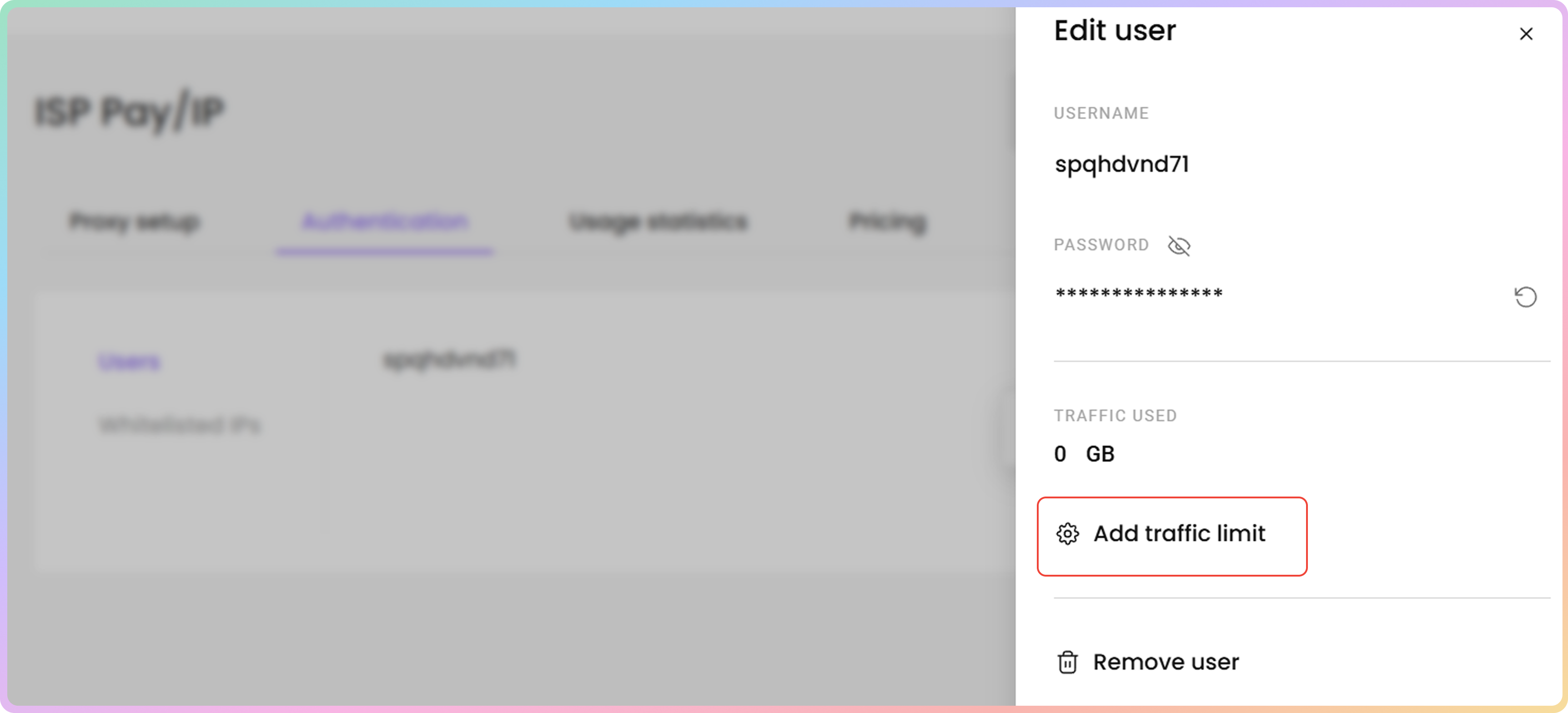 - 要为特定代理用户添加、编辑或删除流量限制,请点击添加流量限制。