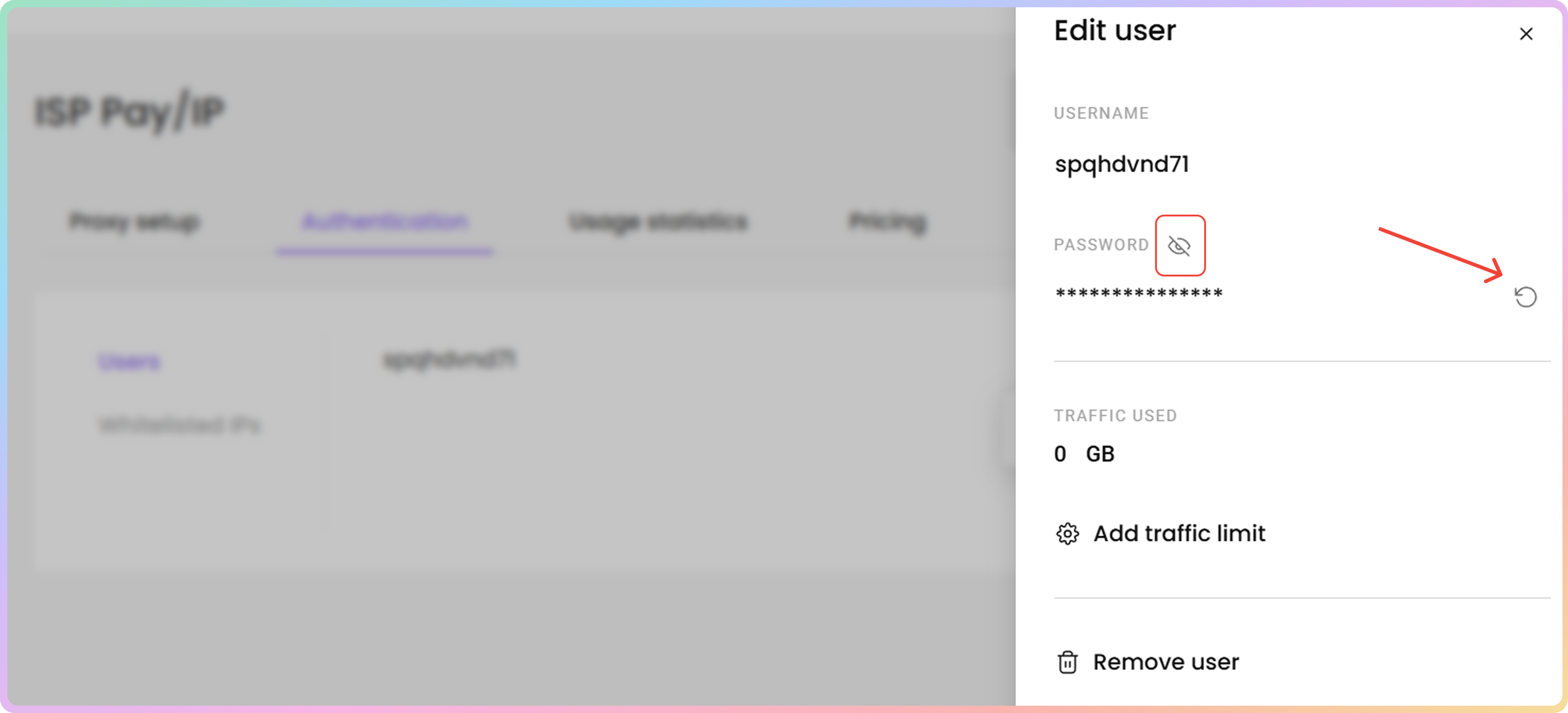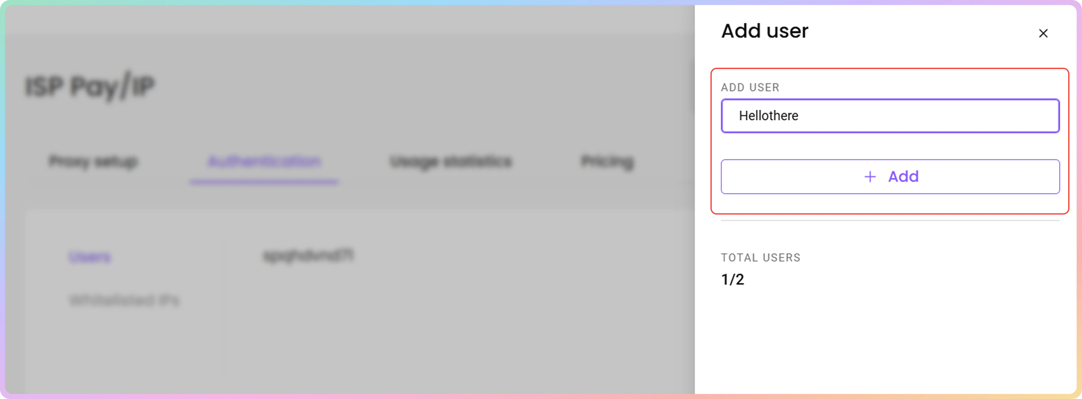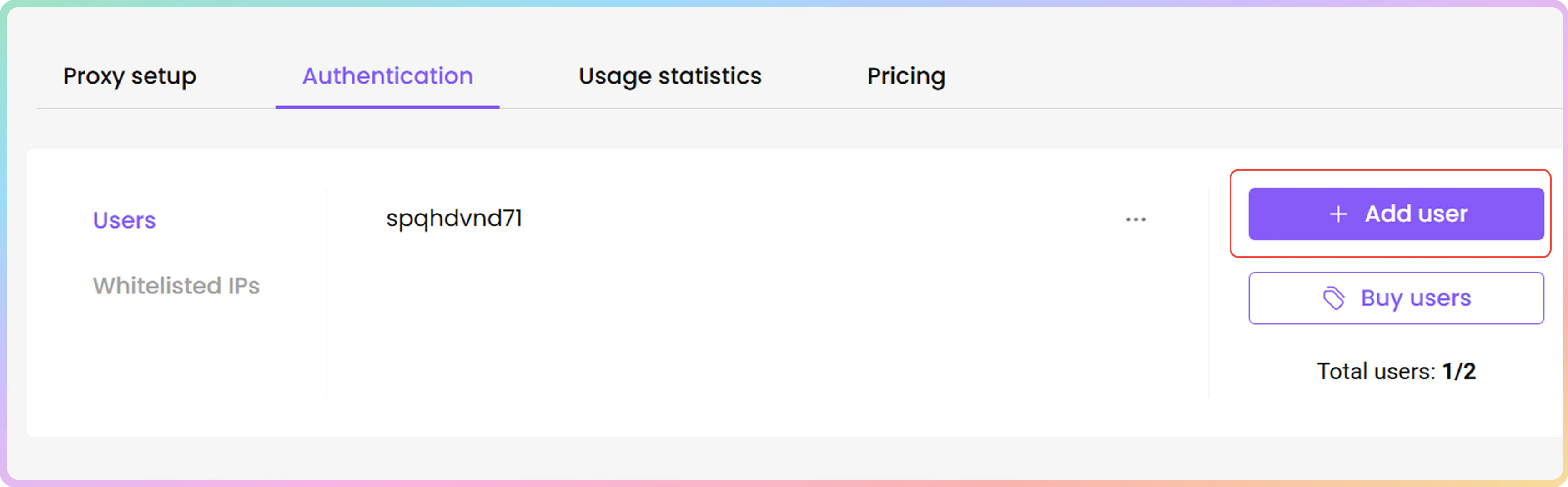 - 要创建新的代理用户名和密码,请点击**+ 添加用户**。右侧将打开一个菜单。