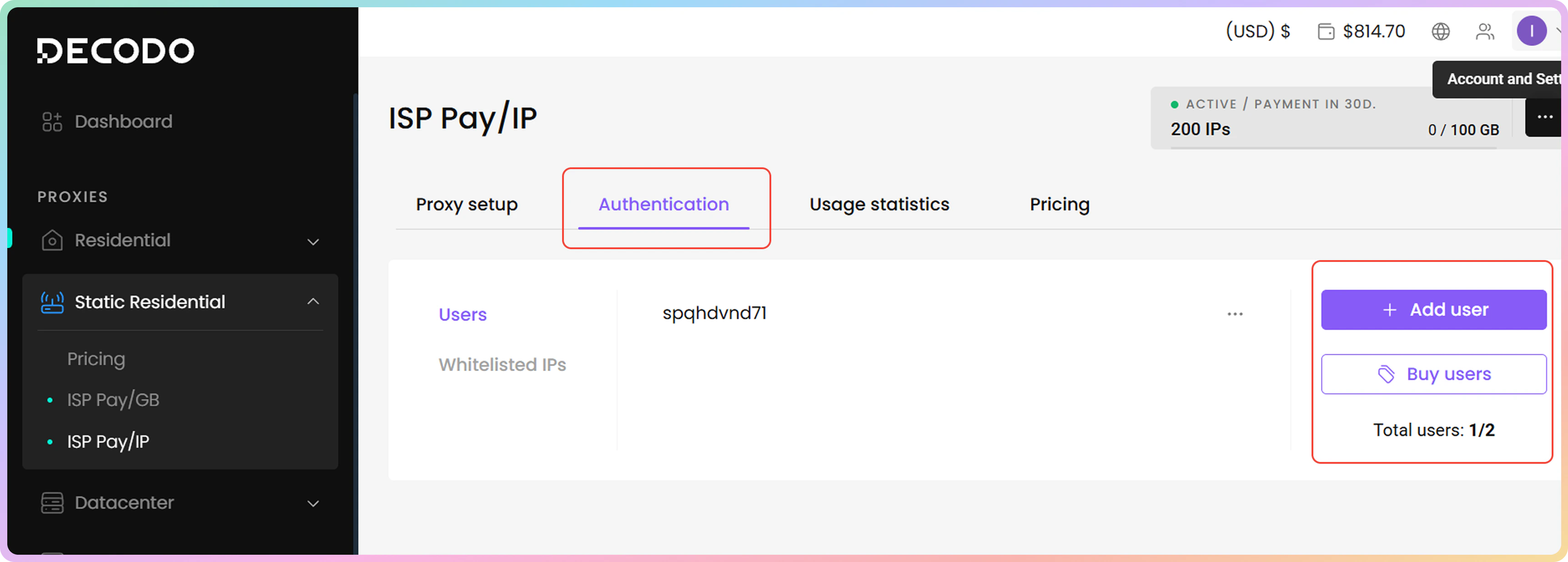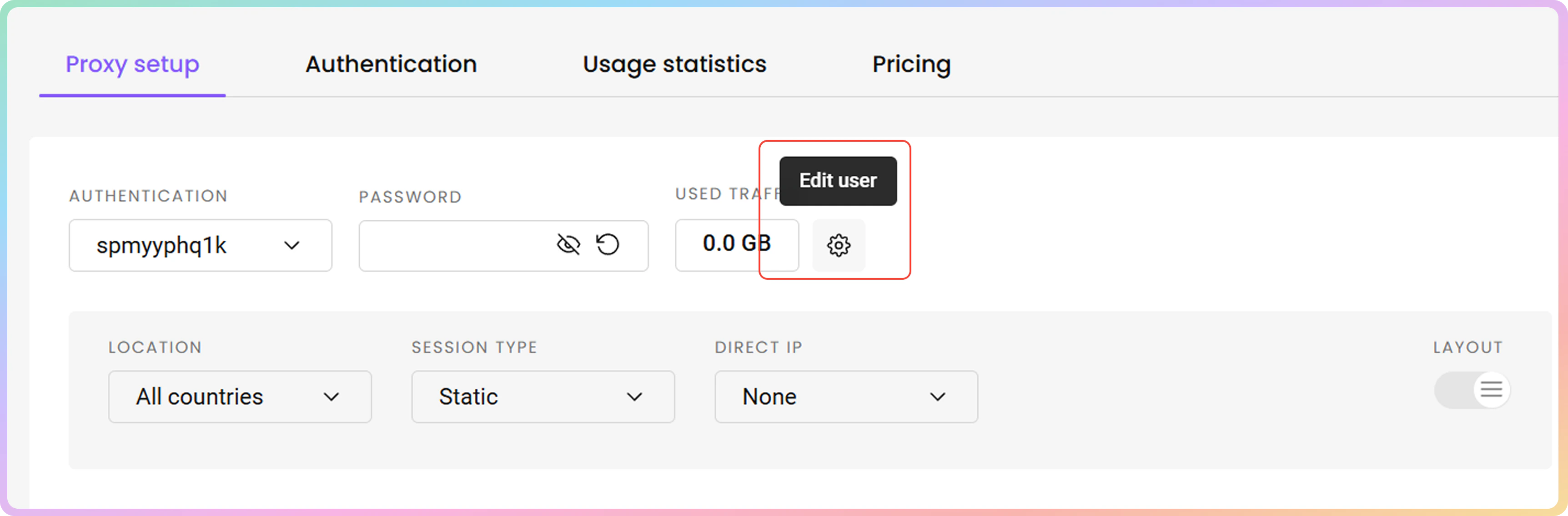 - 购买订阅后,系统将在身份验证部分自动生成代理用户名和密码。