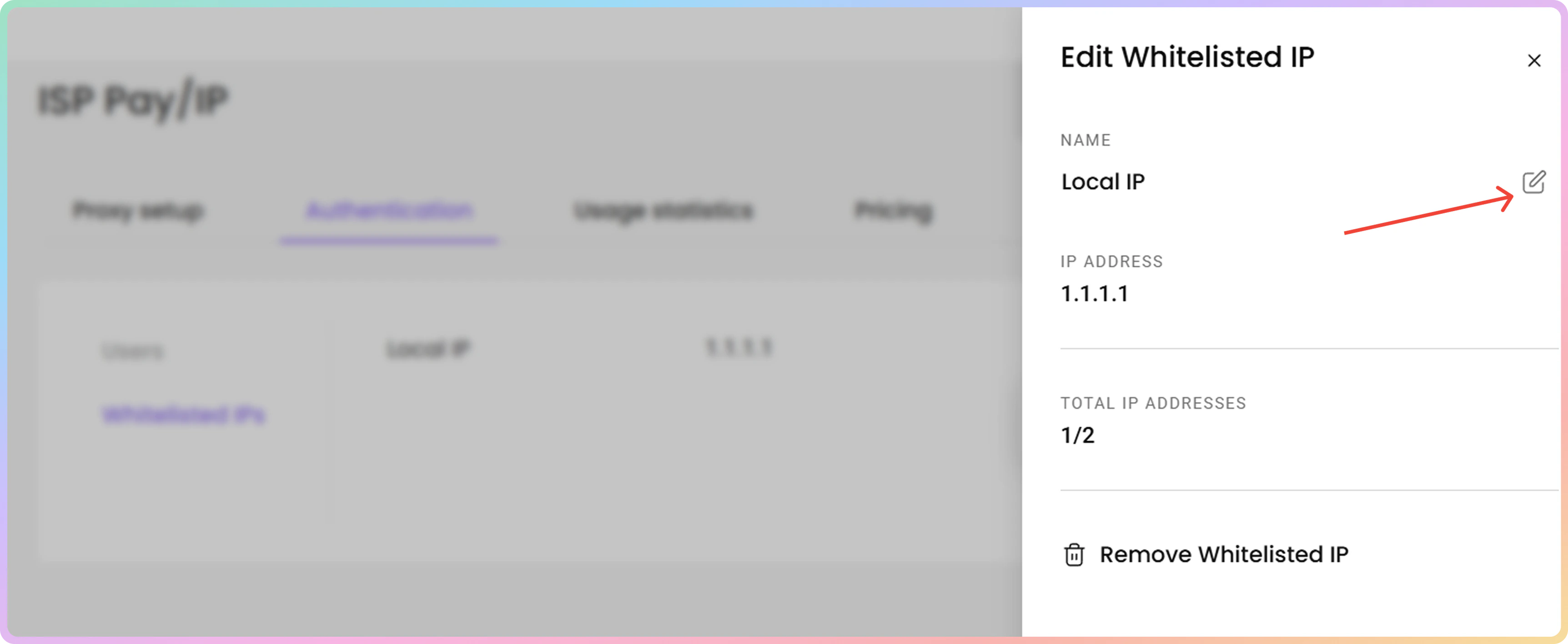 - 要编辑白名单IP,请点击三个点,然后点击编辑IP。右侧将打开一个菜单。