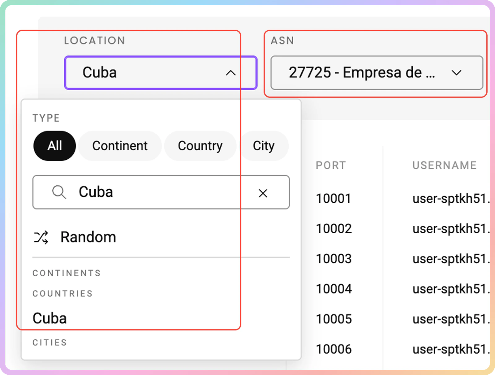 - 移动代理使用以下端点和端口进行随机请求: