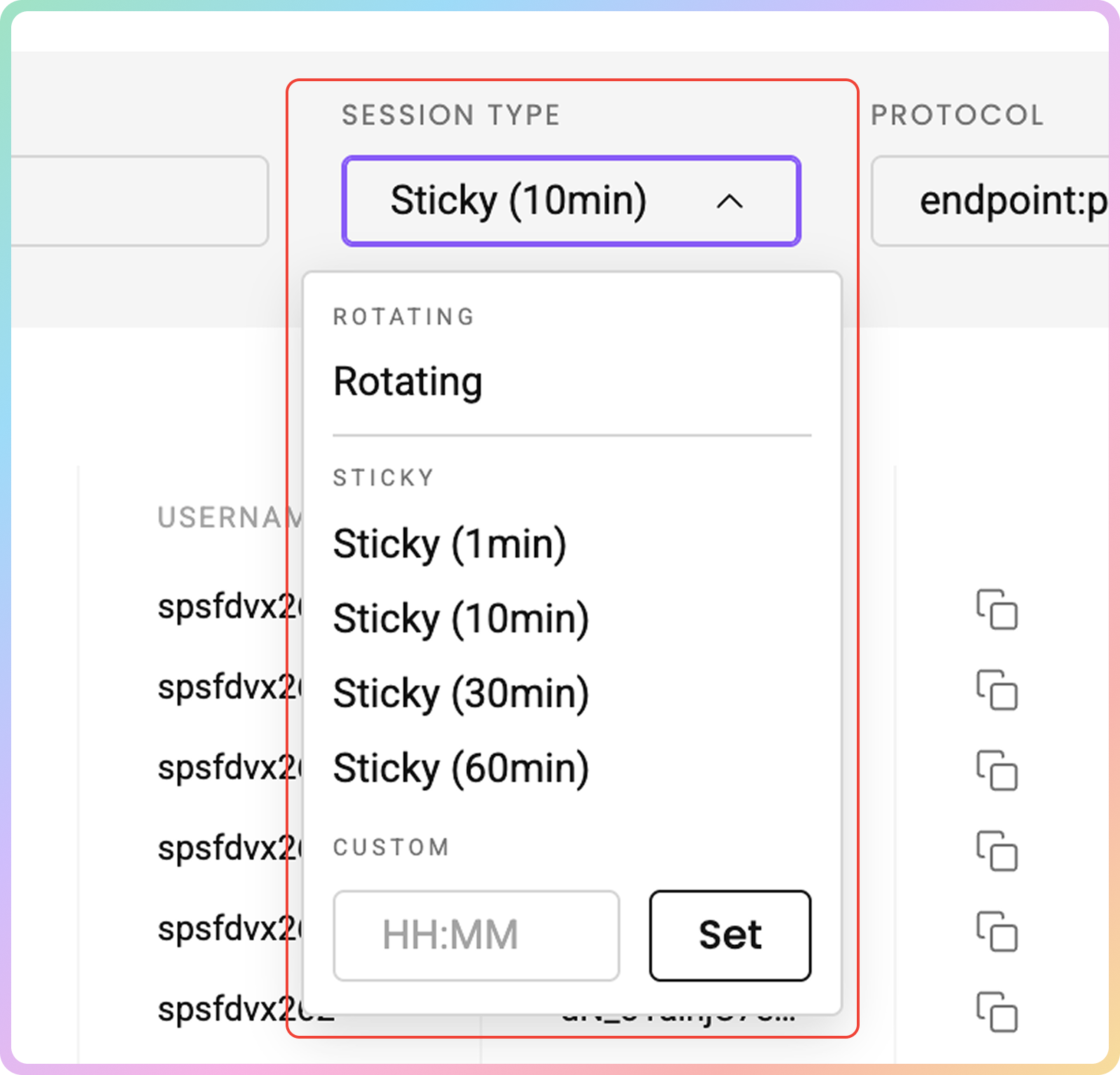- 然后,选择您首选的会话类型,轮换或粘性。