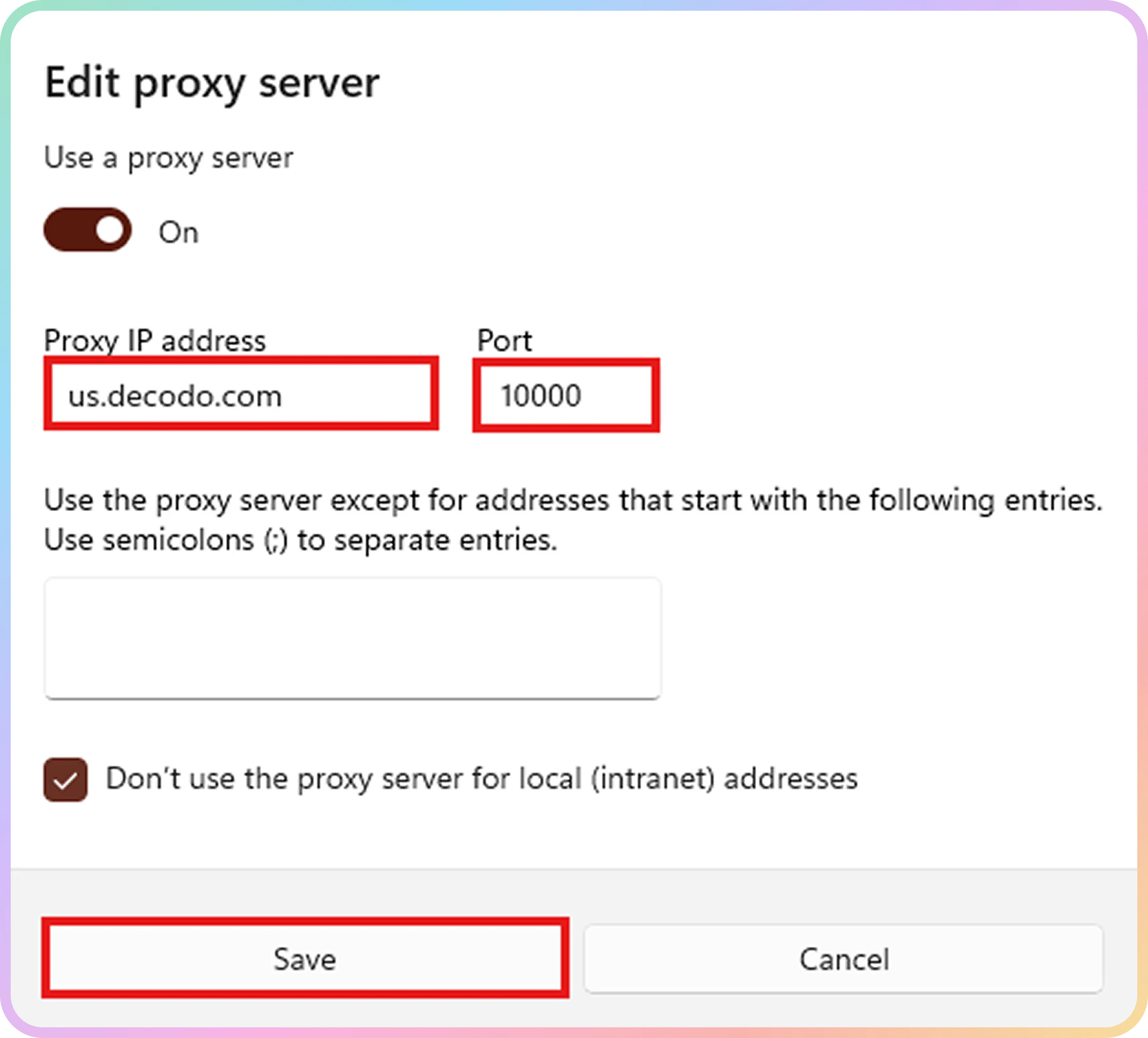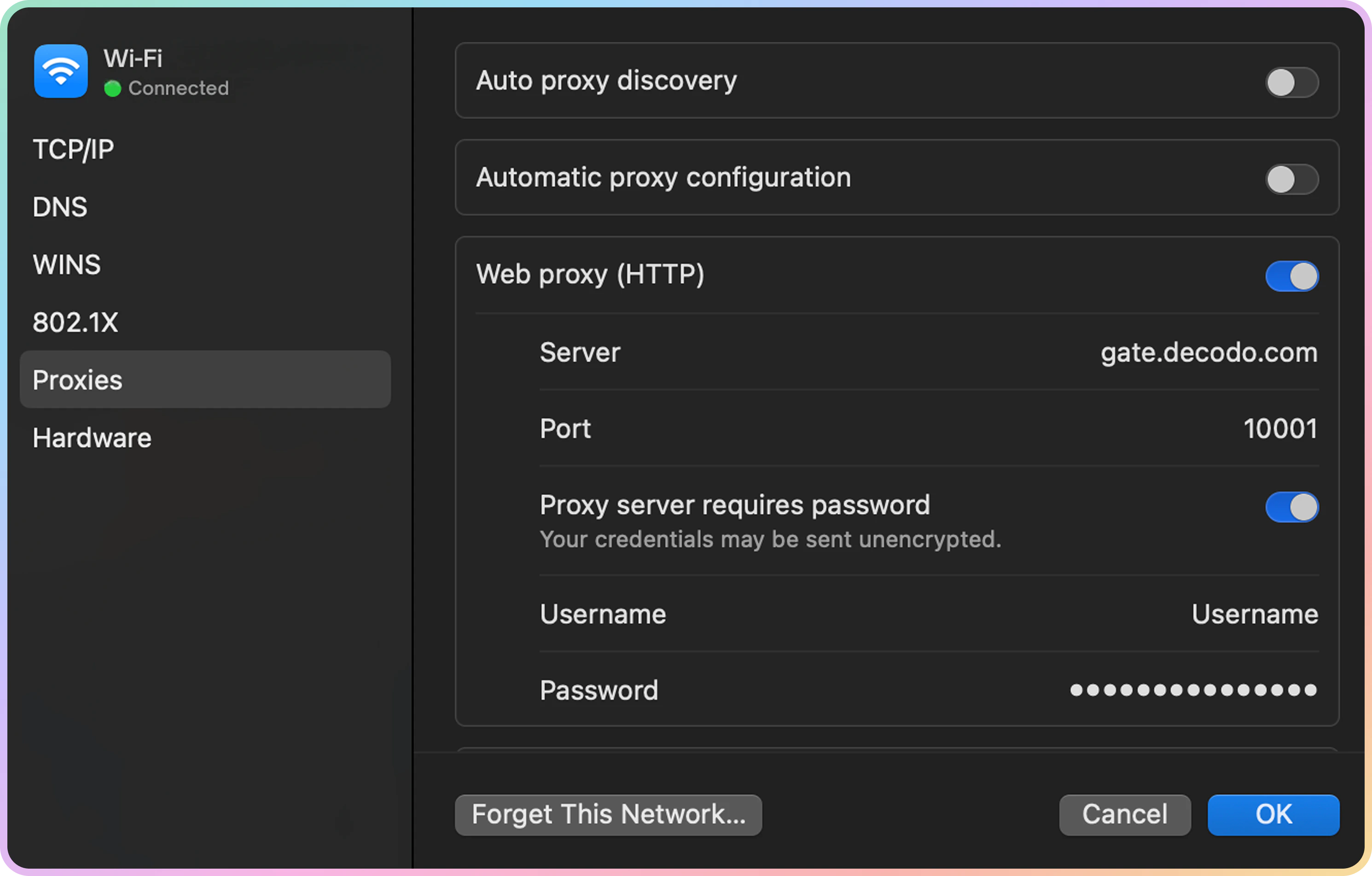 us.decodo.com:10101)。 - 如有必要,请尝试此处的解决方法,但它只能暂时工作,之后需要再次更新设置。