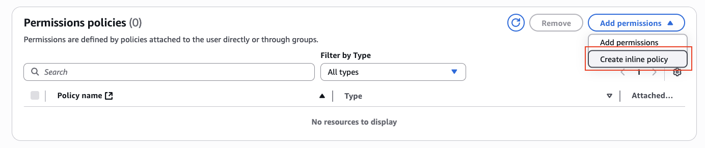 - 添加内联策略: