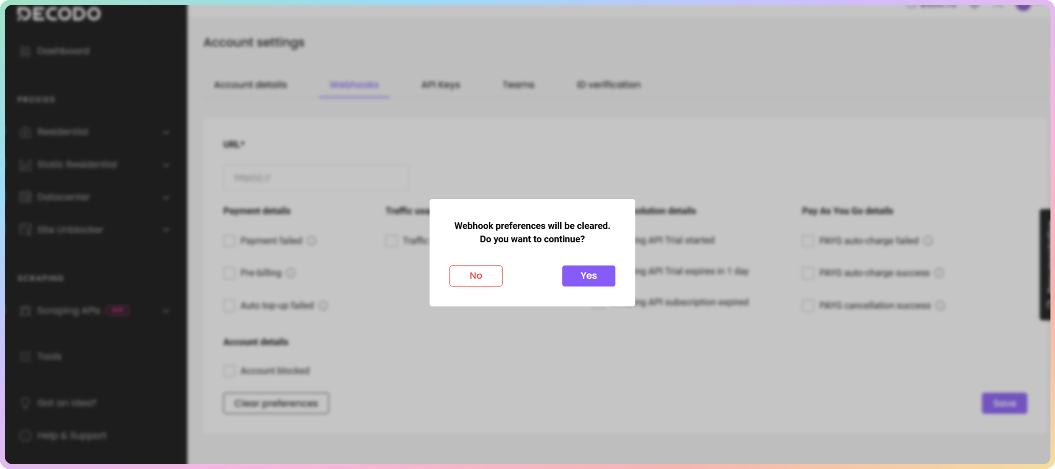 如果您不想再接收 webhook 或只是重置它们并设置新配置,请按照以下步骤操作: