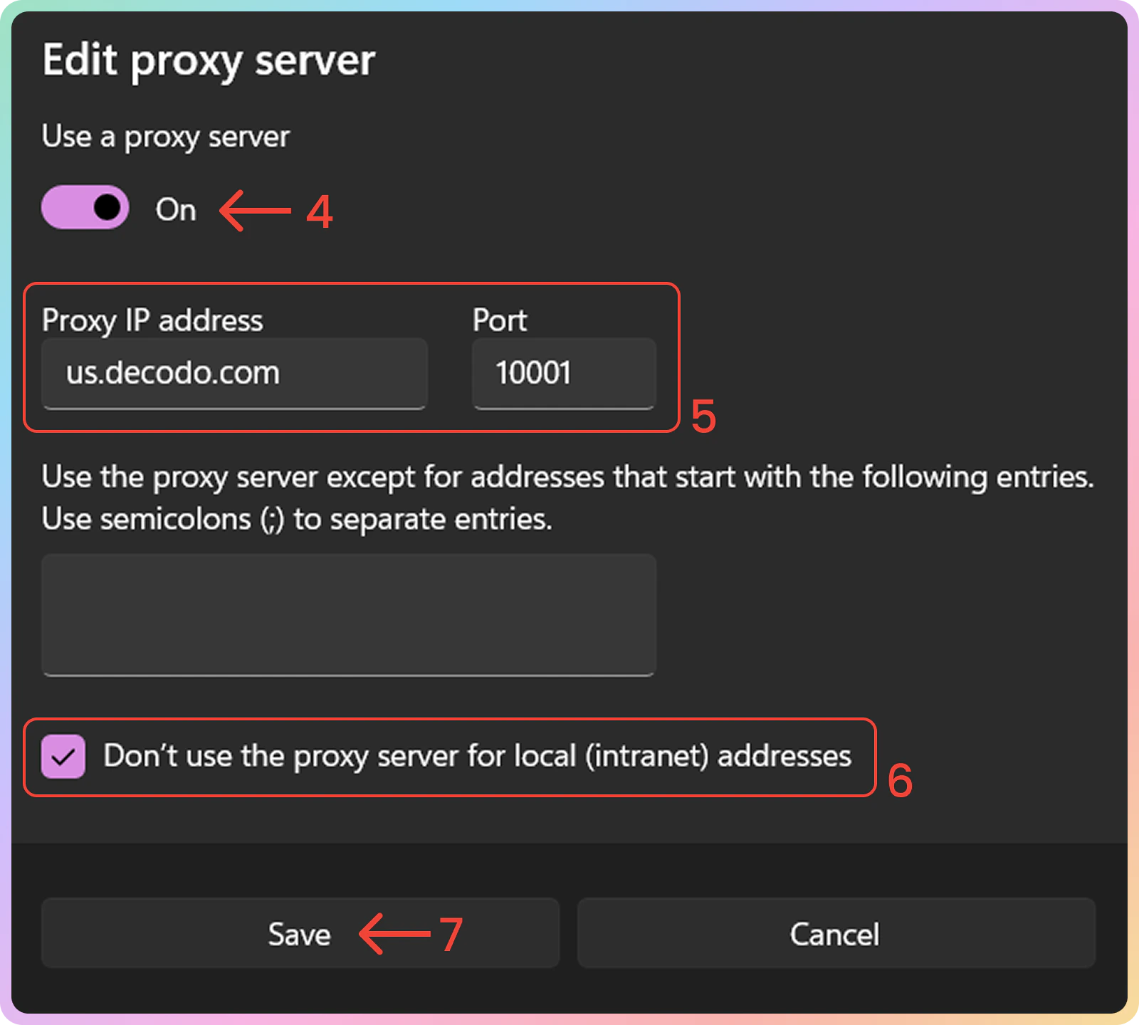 us.decodo.com:10101)。 - 如有必要,请尝试此处的解决方法,但它只能暂时工作,之后需要再次更新设置。