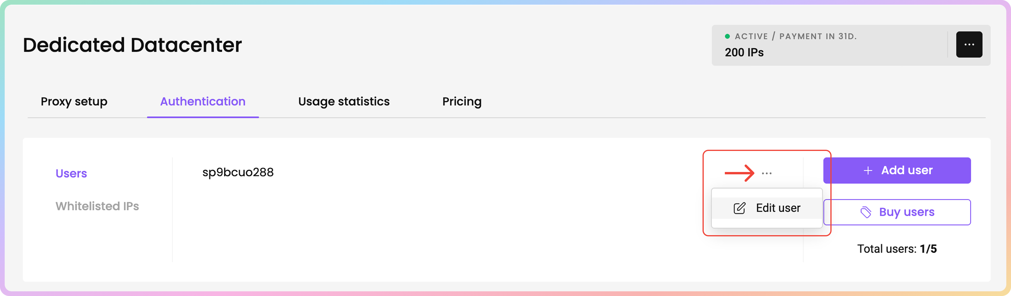 You can manage proxy users and whitelisted IPs on the Datacenter → Dedicated Datacenter → Authentication section on your dashboard.