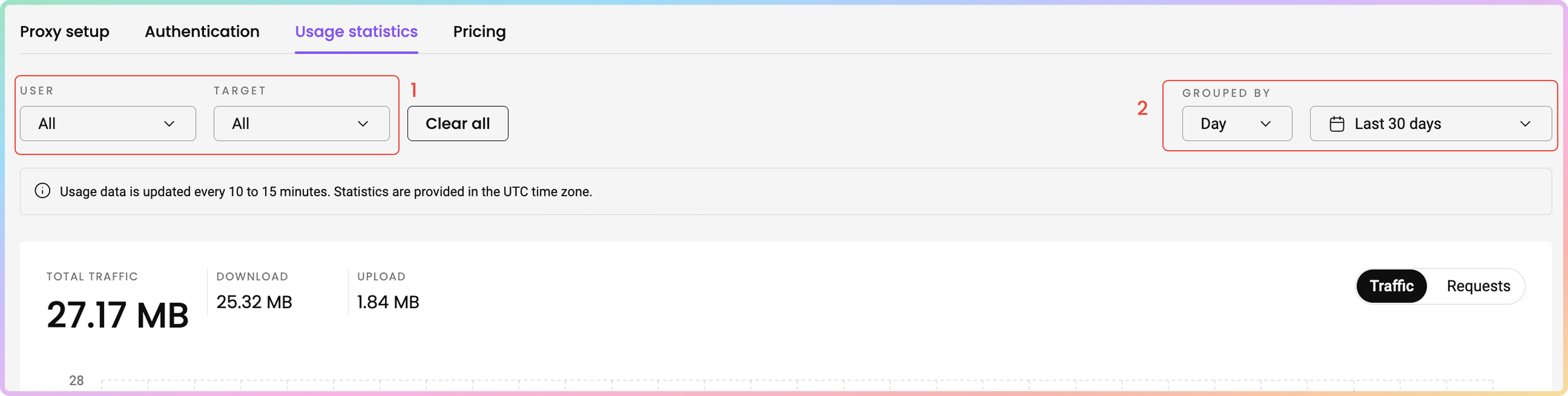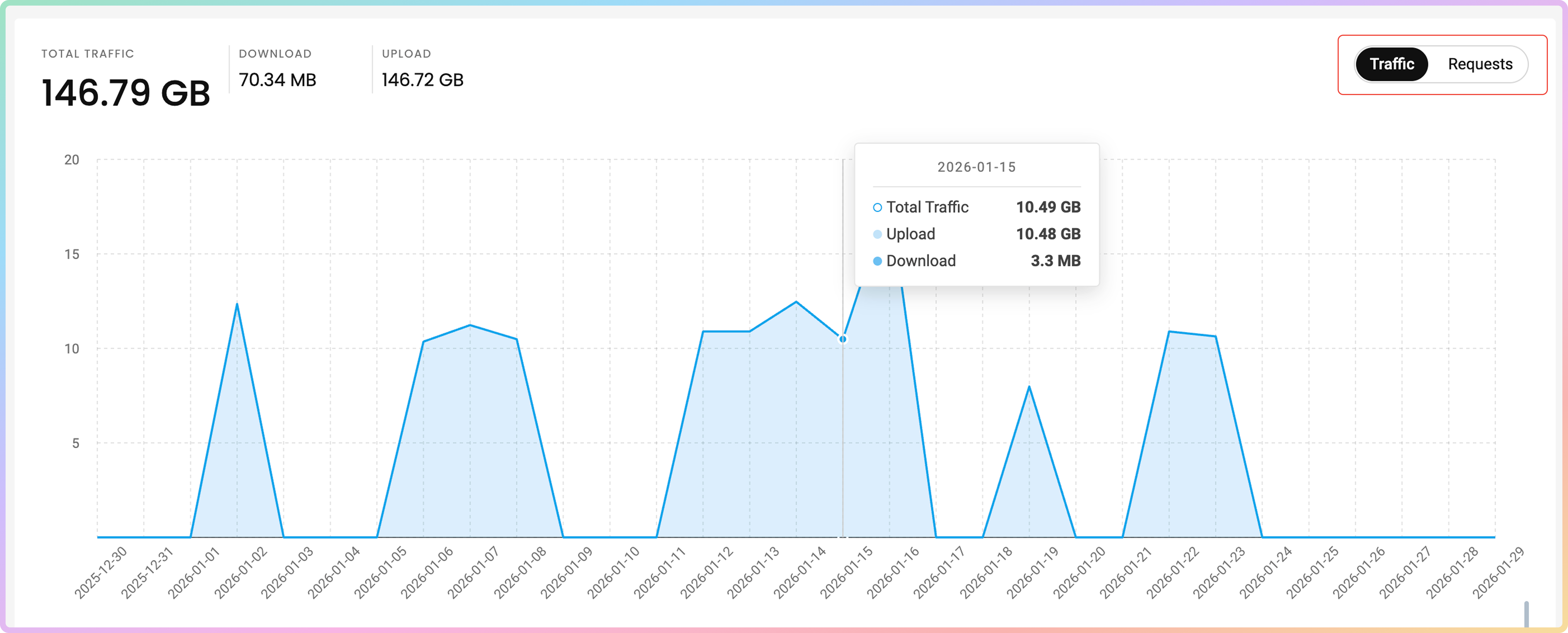 You will see a line graph, which displays your total Traffic or Requests sent with the proxies.