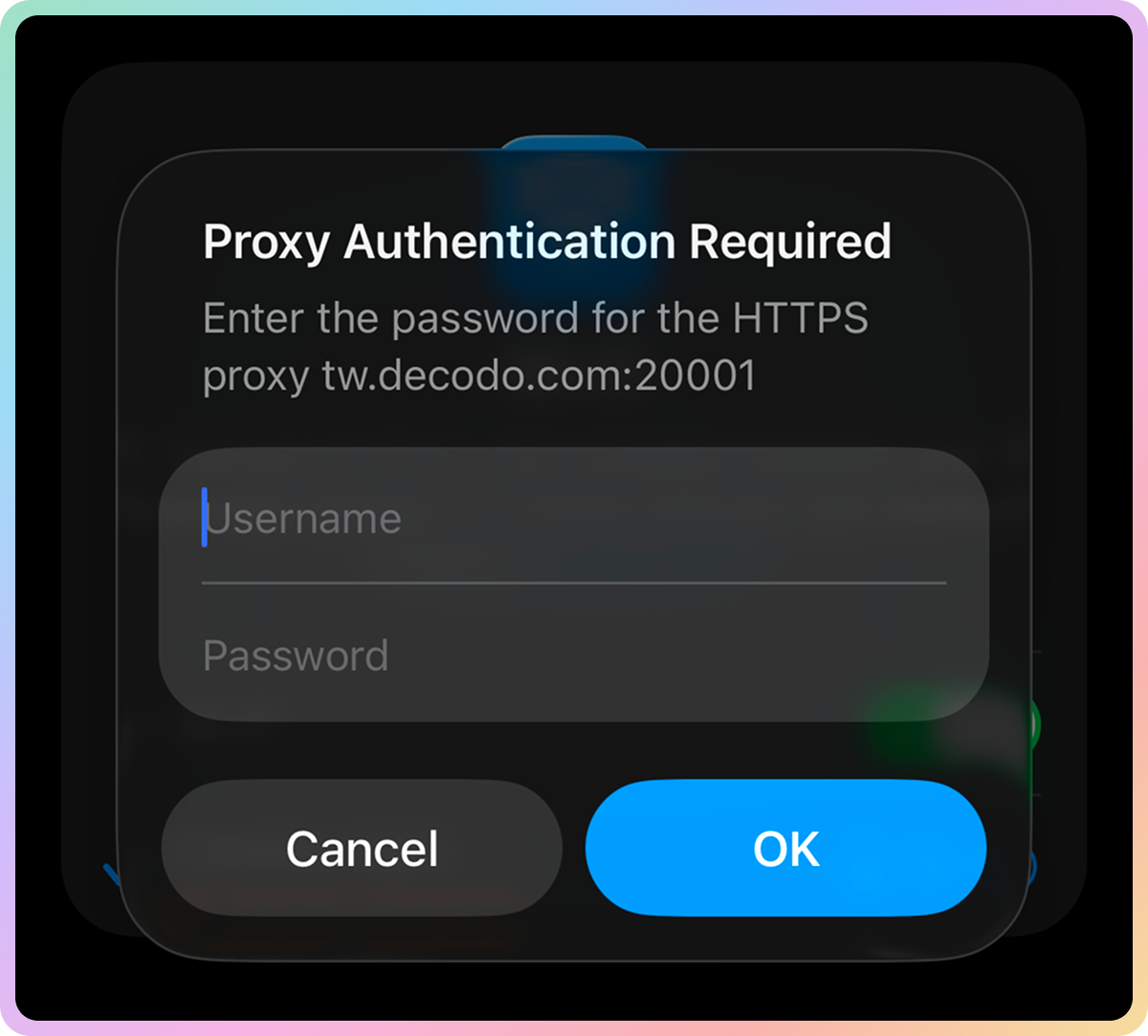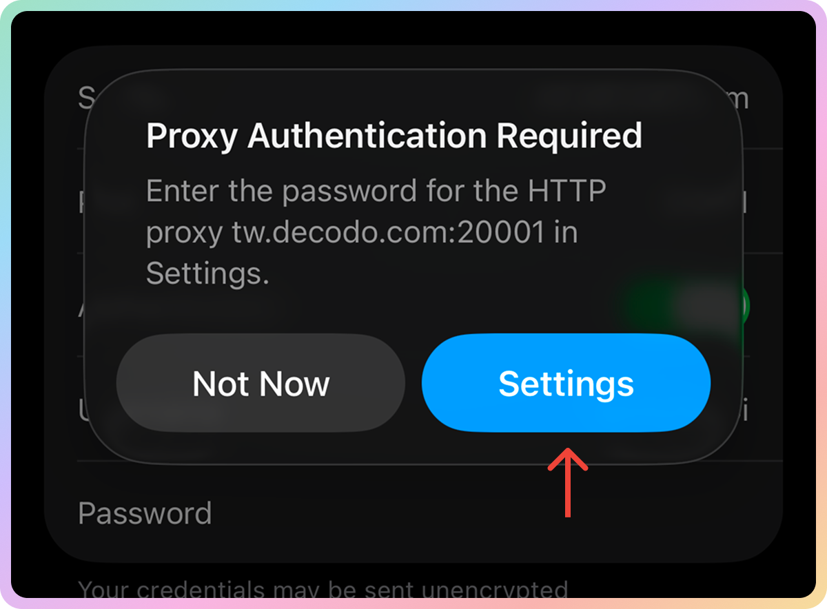 Step 8. If you receive a pop-up asking for credentials, tap Settings, and re-enter your proxy authentication details.