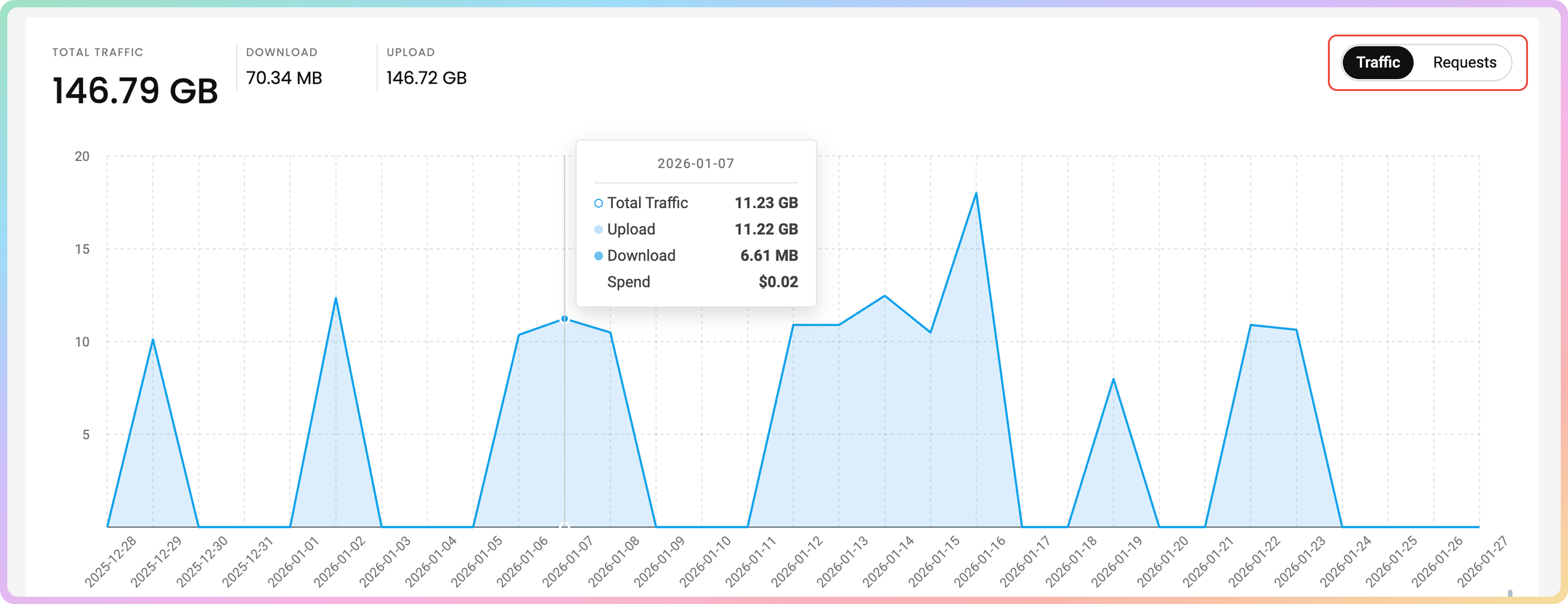 - You can find the Date, Traffic Usage, Download, and Upload traffic in