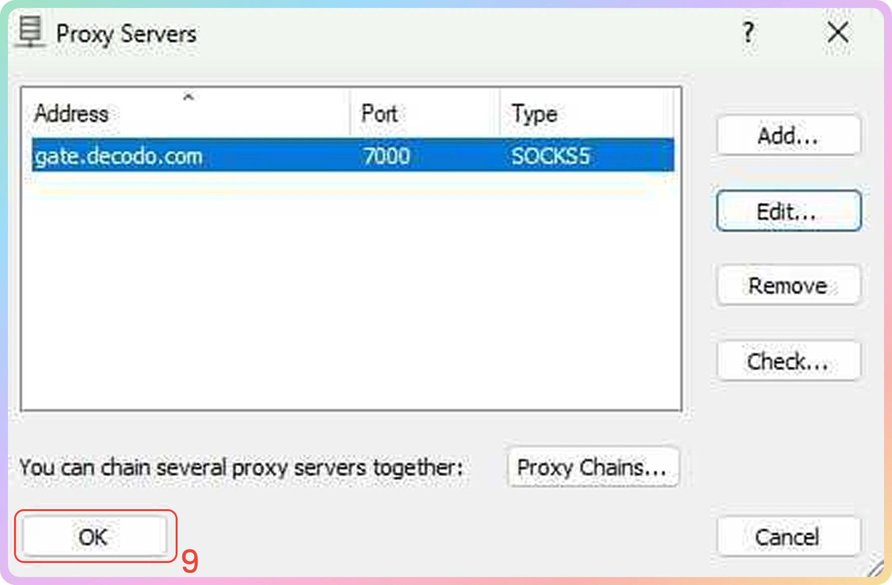 us.decodo.com:10101). - If necessary, try the workaround here, but it only works temporarily before requiring another setup update.