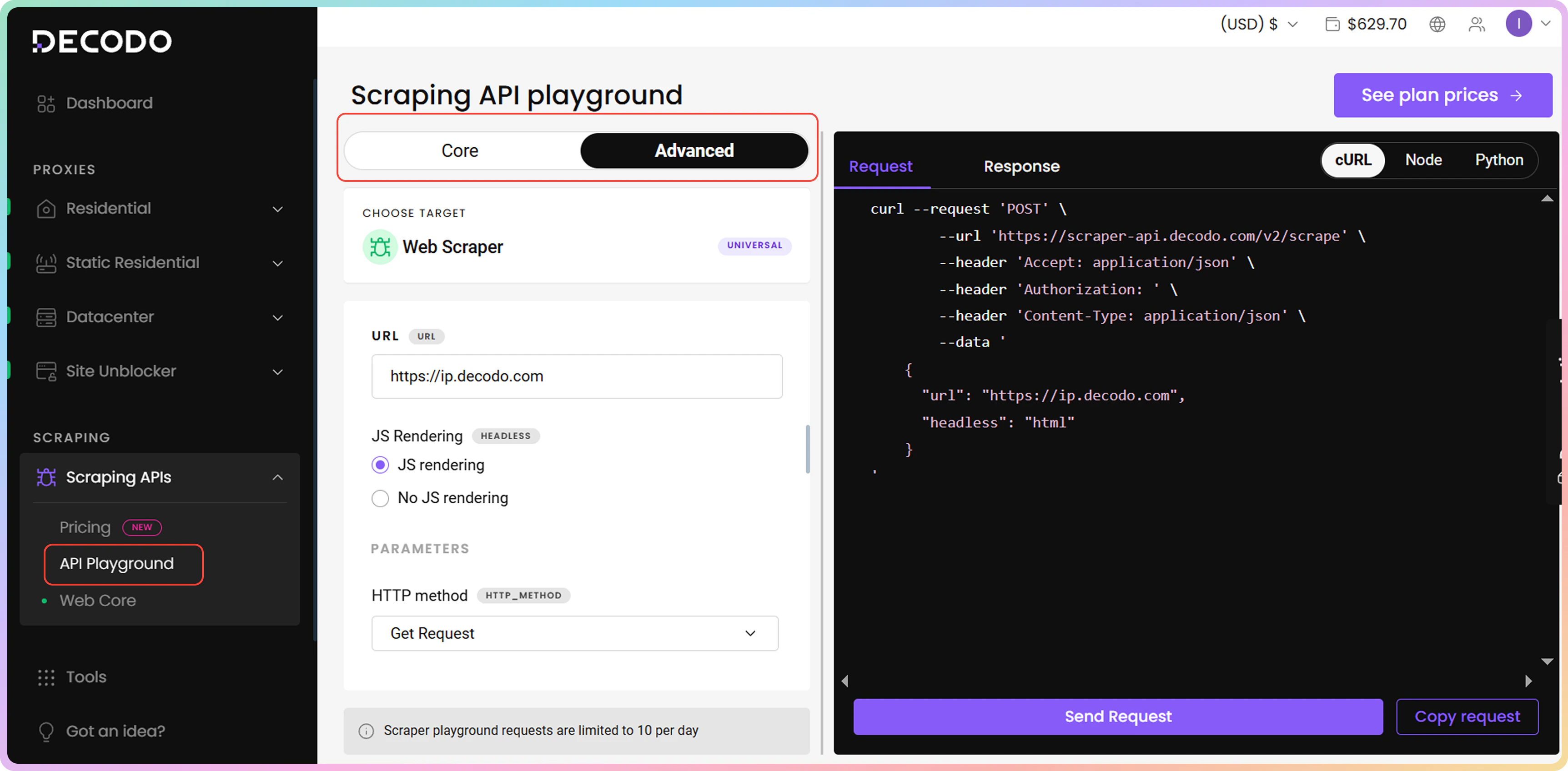 Core and Advanced plans are no longer available for purchase. Please consider migrating to the all-in-one Web Scraper API; check out the guide here.
